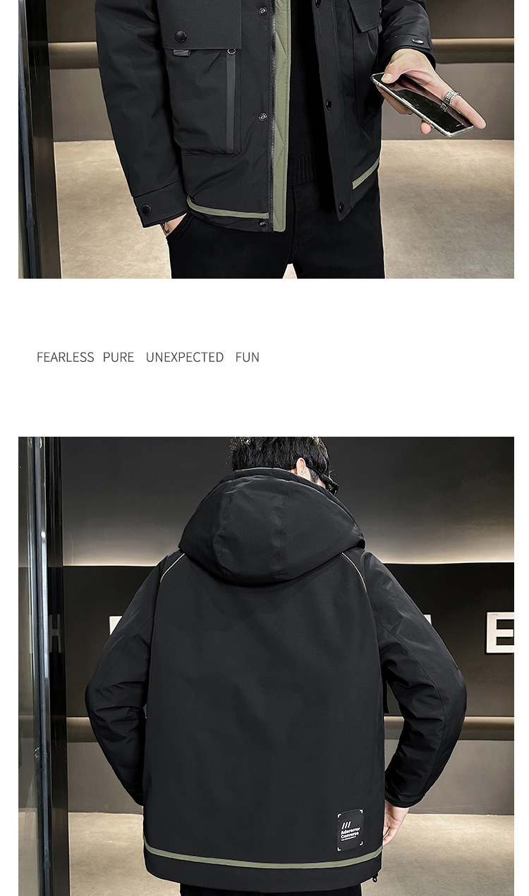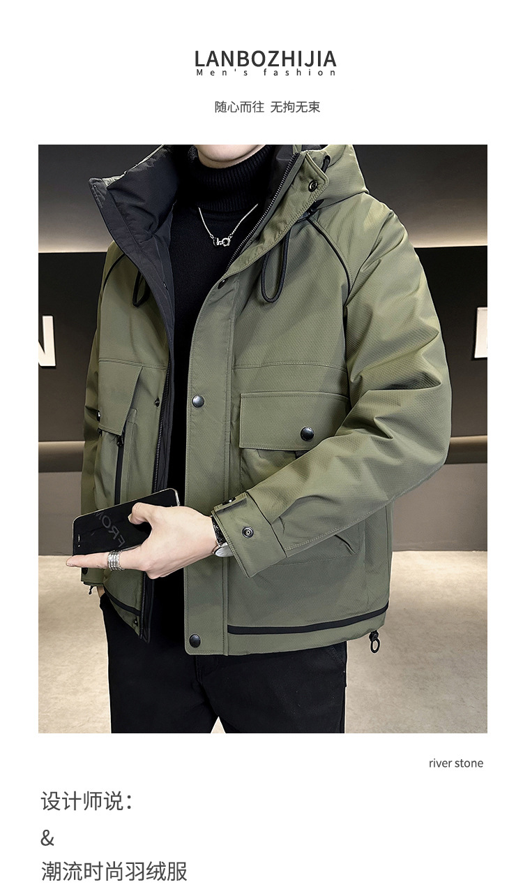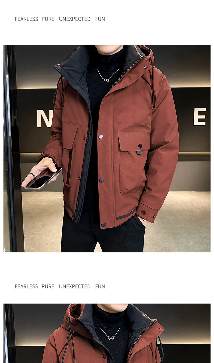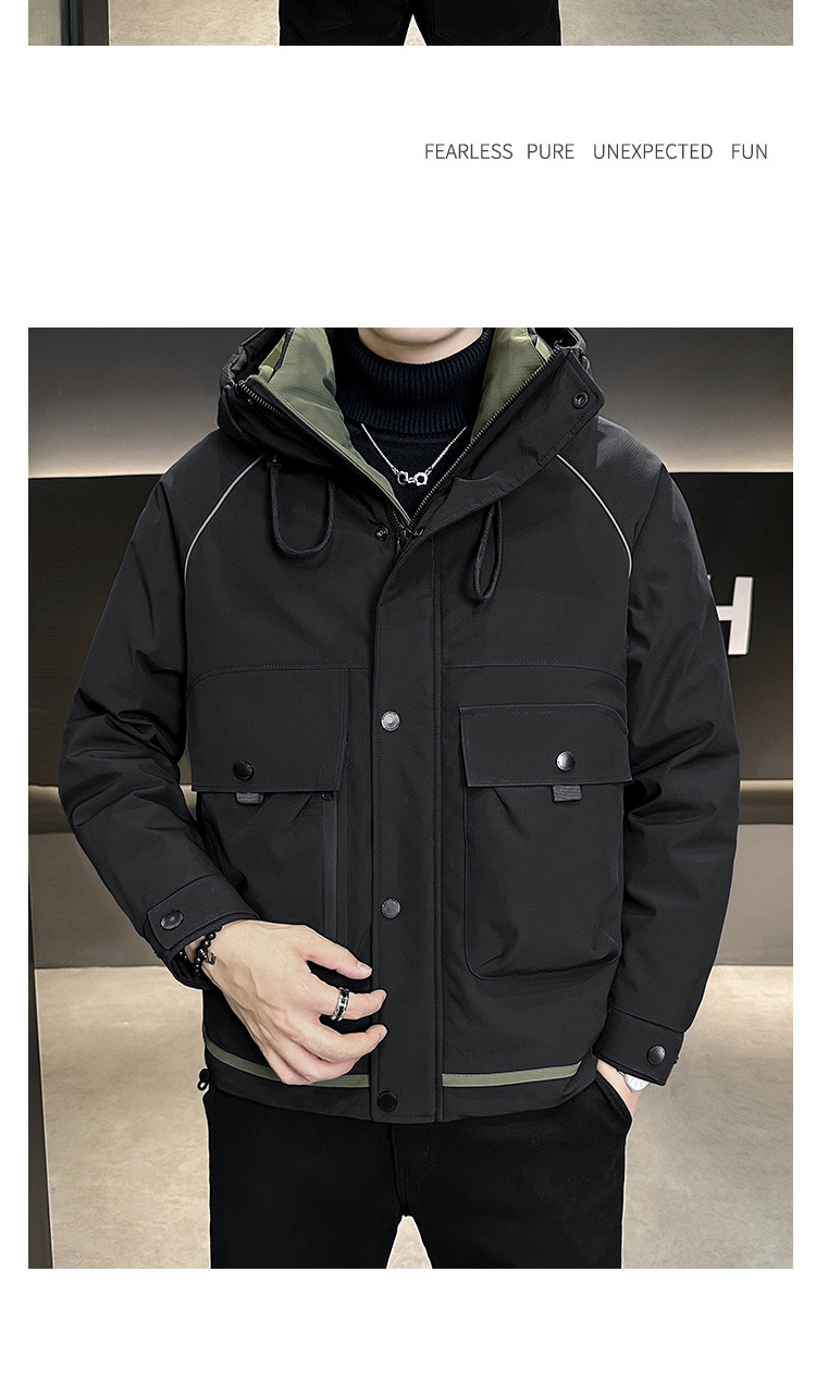 • 2024 Winter New Men's Hooded Down Jacket Men's Trendy Workwear Outdoor Thickened Winter Jacket