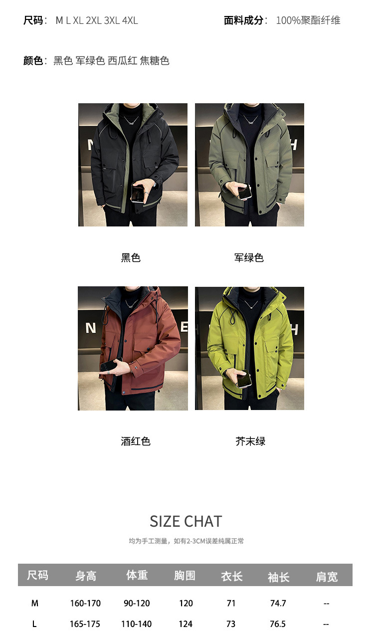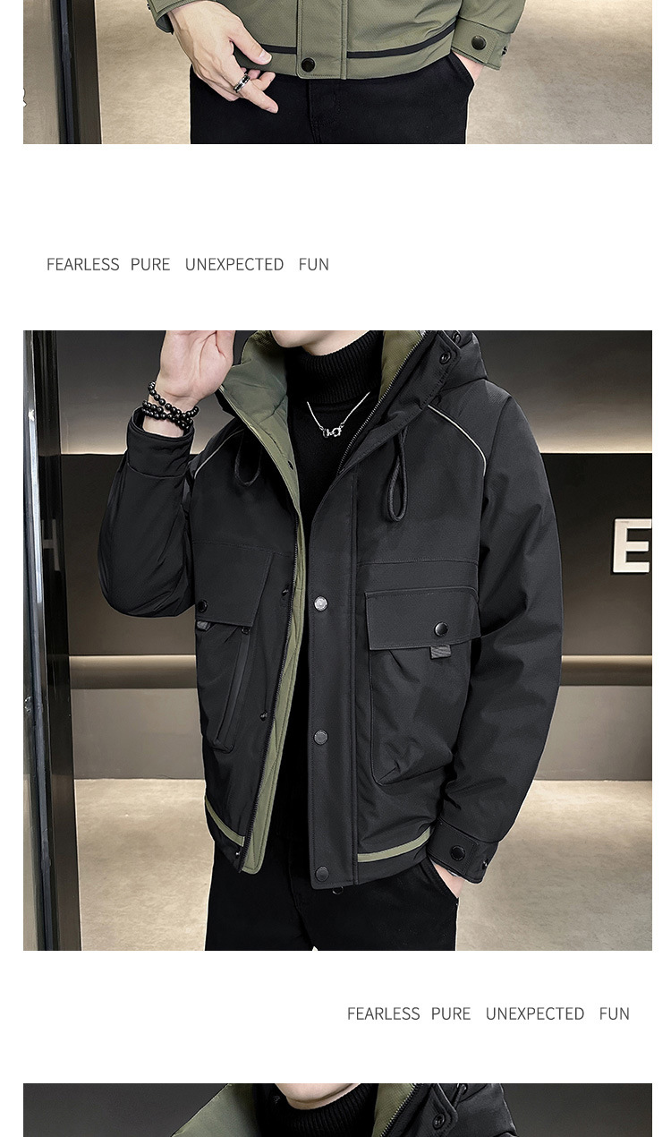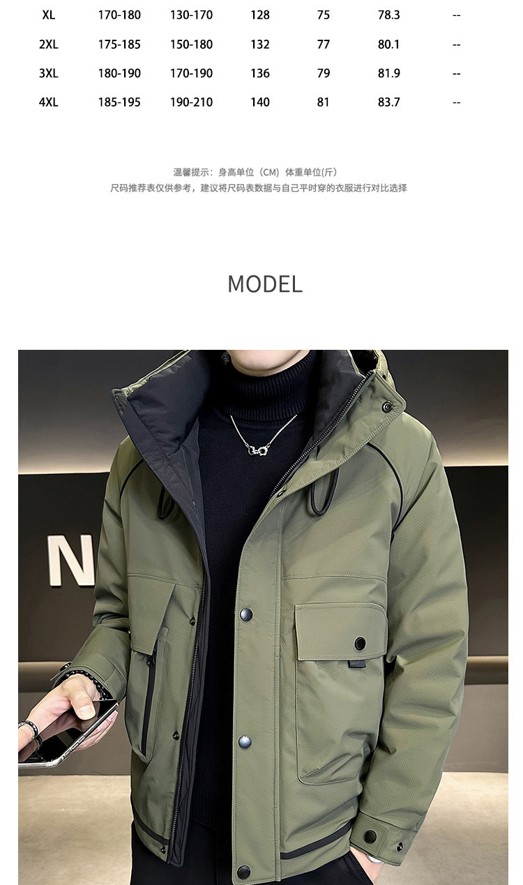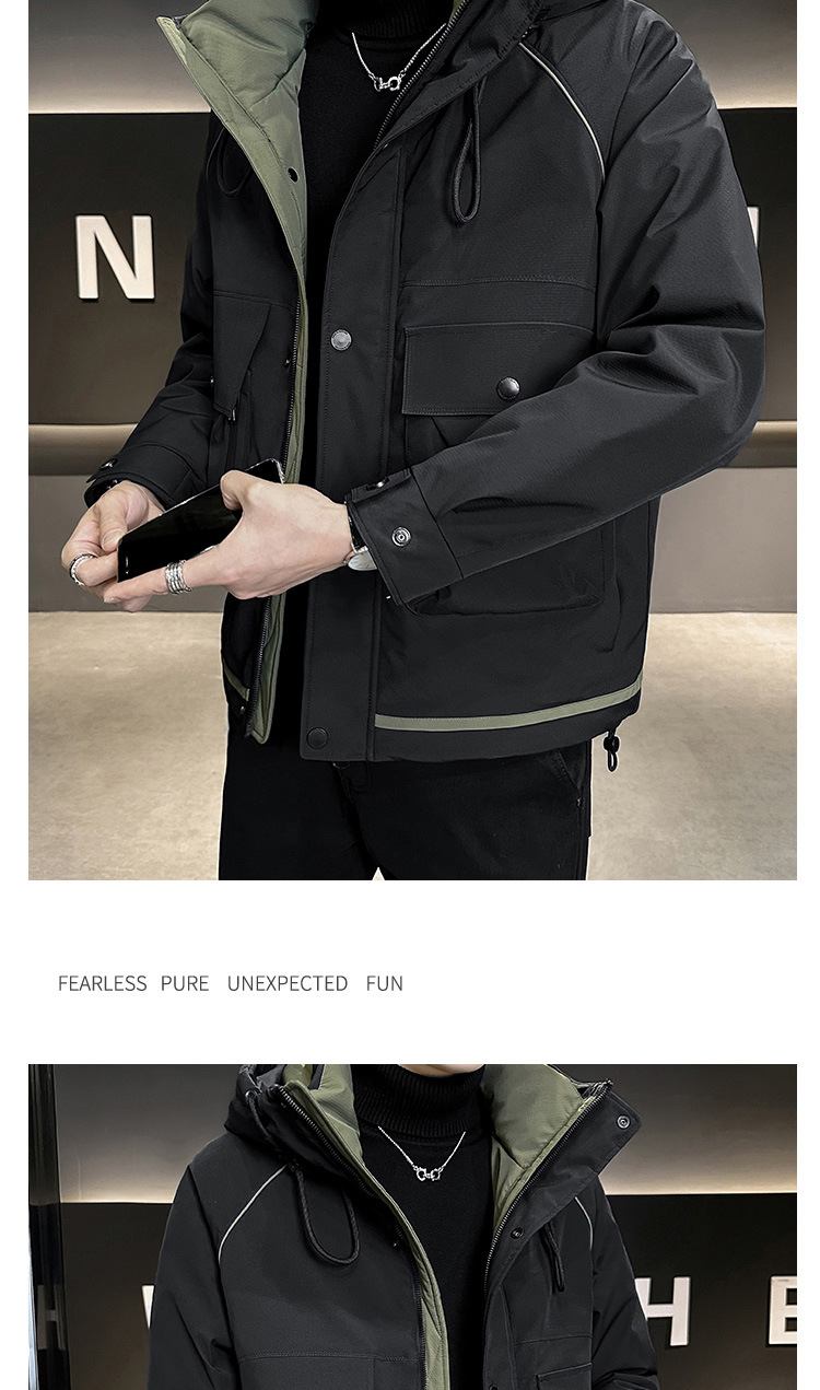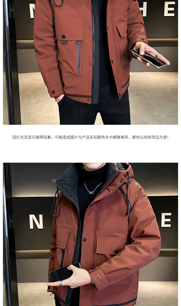• 2024 Winter New Men's Hooded Down Jacket Men's Trendy Workwear Outdoor Thickened Winter Jacket
