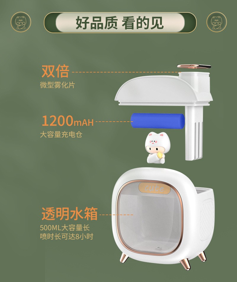 • Double-jet large-capacity cute pet humidifier household small silent bedroom usb office desktop portable dormitory