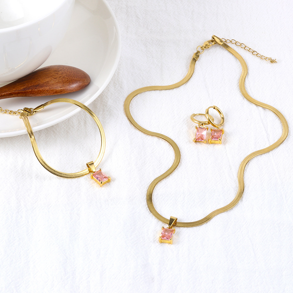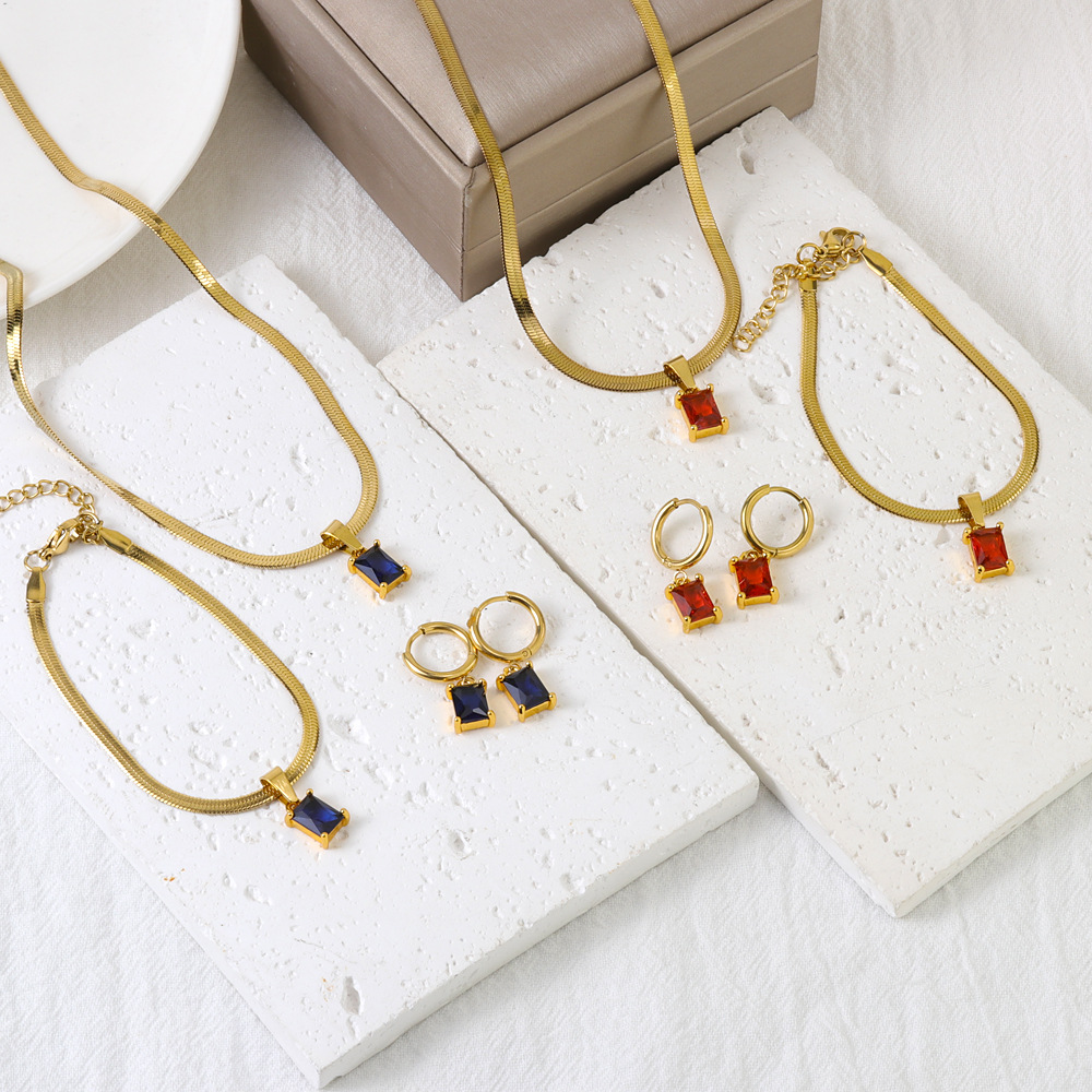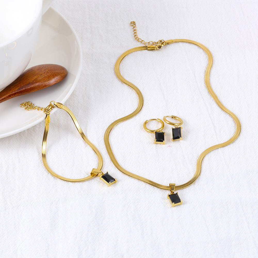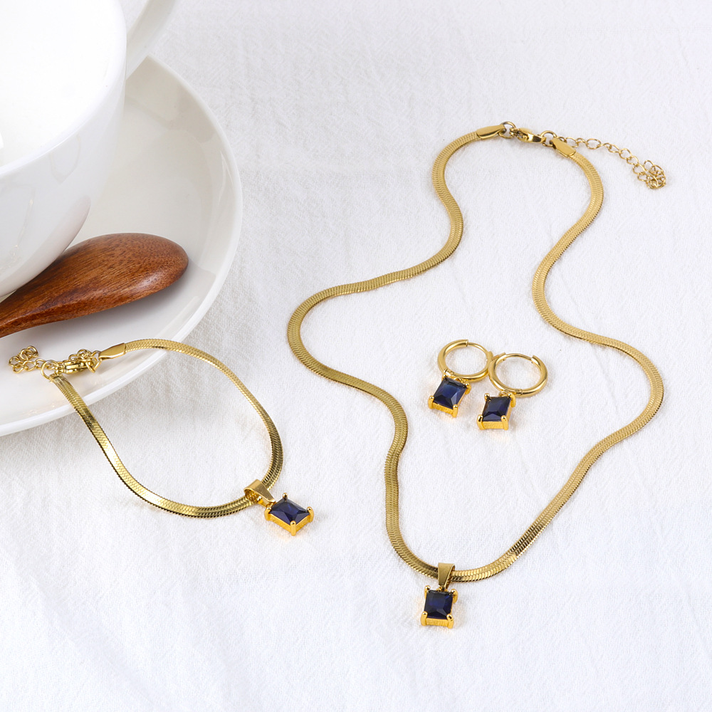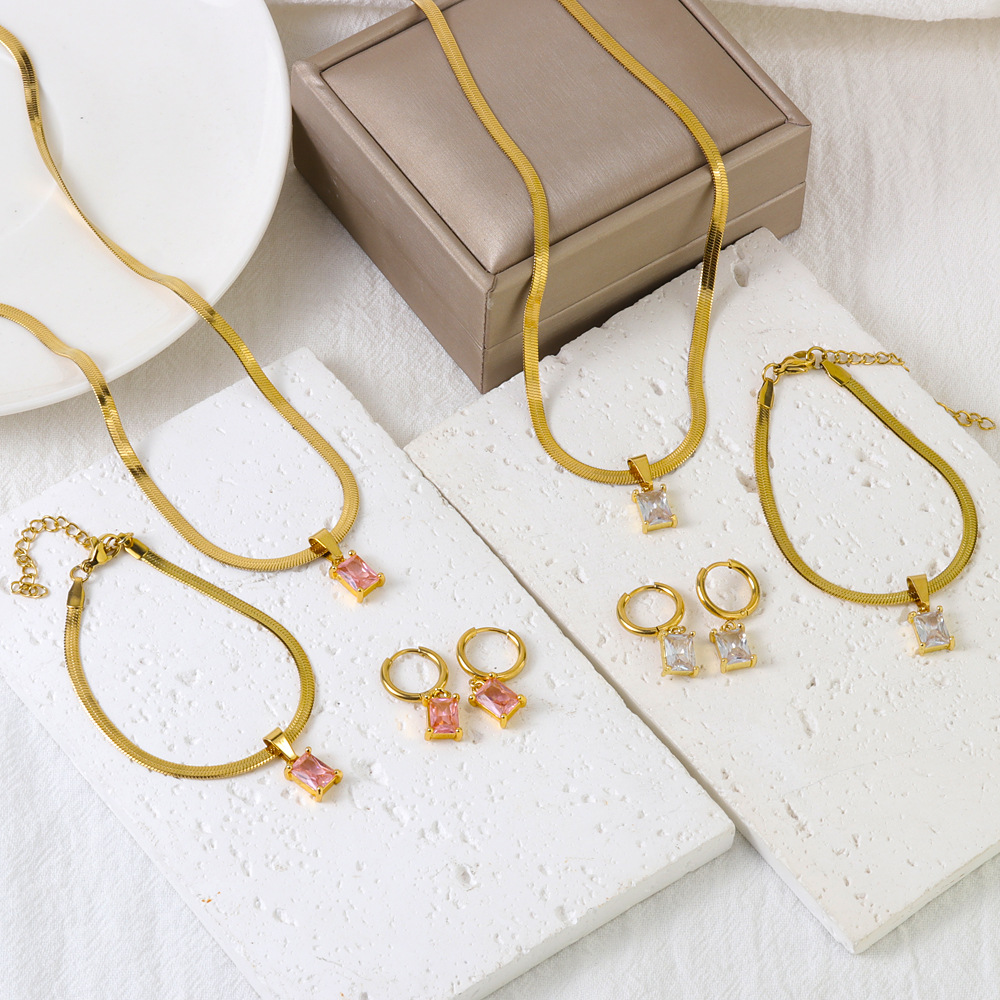 • Cross-Border Amazon Crystal Zircon Square Diamond Necklace Bracelet Earrings Set Women's Titanium Steel Clavicle Chain Jewelry Wholesale