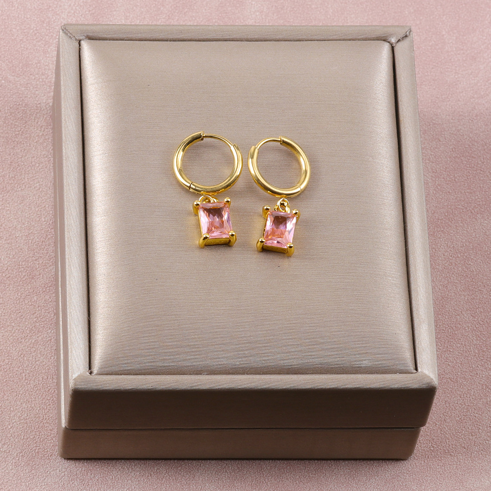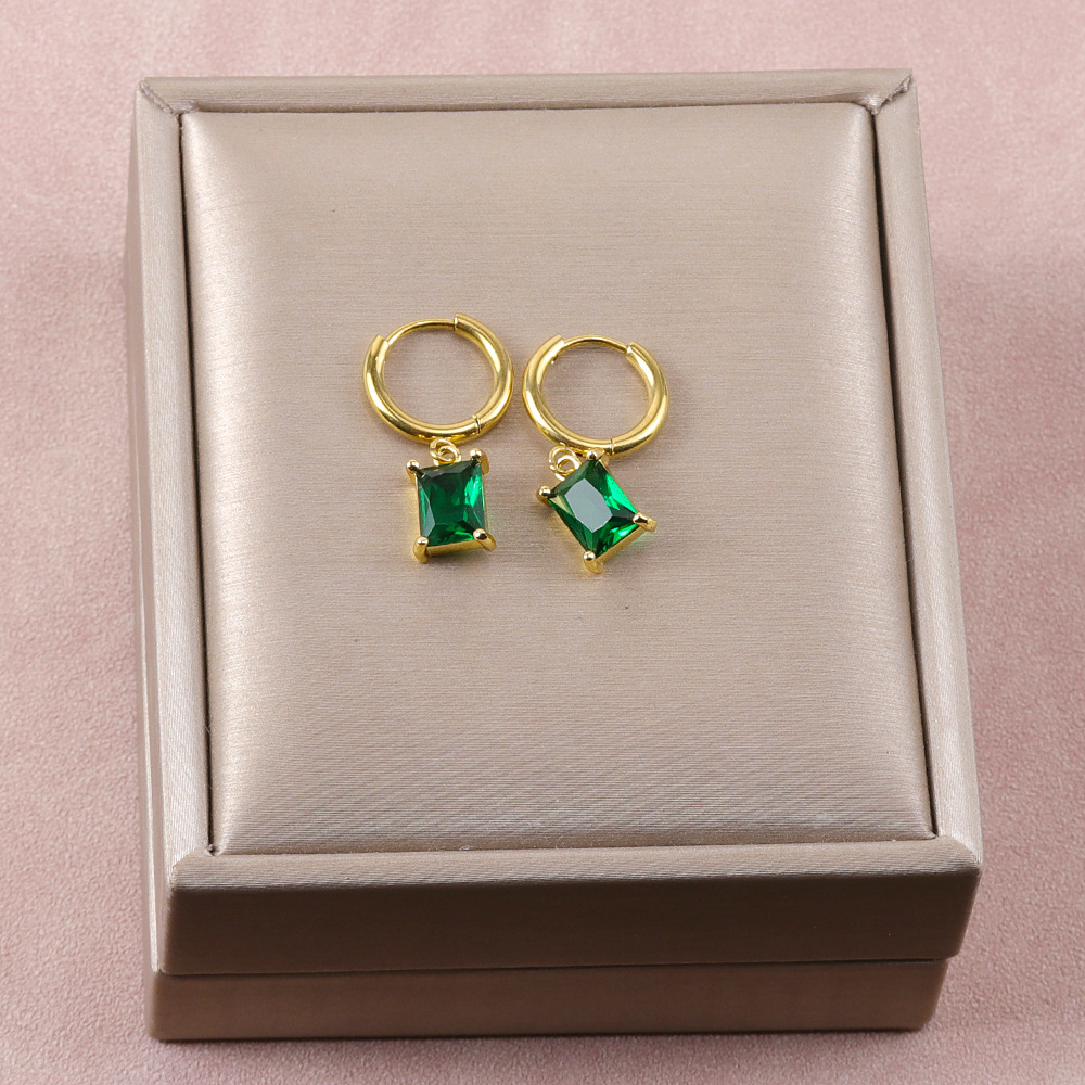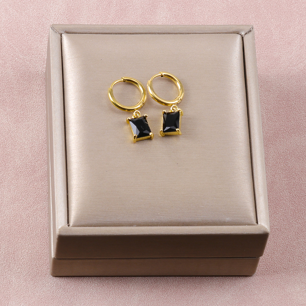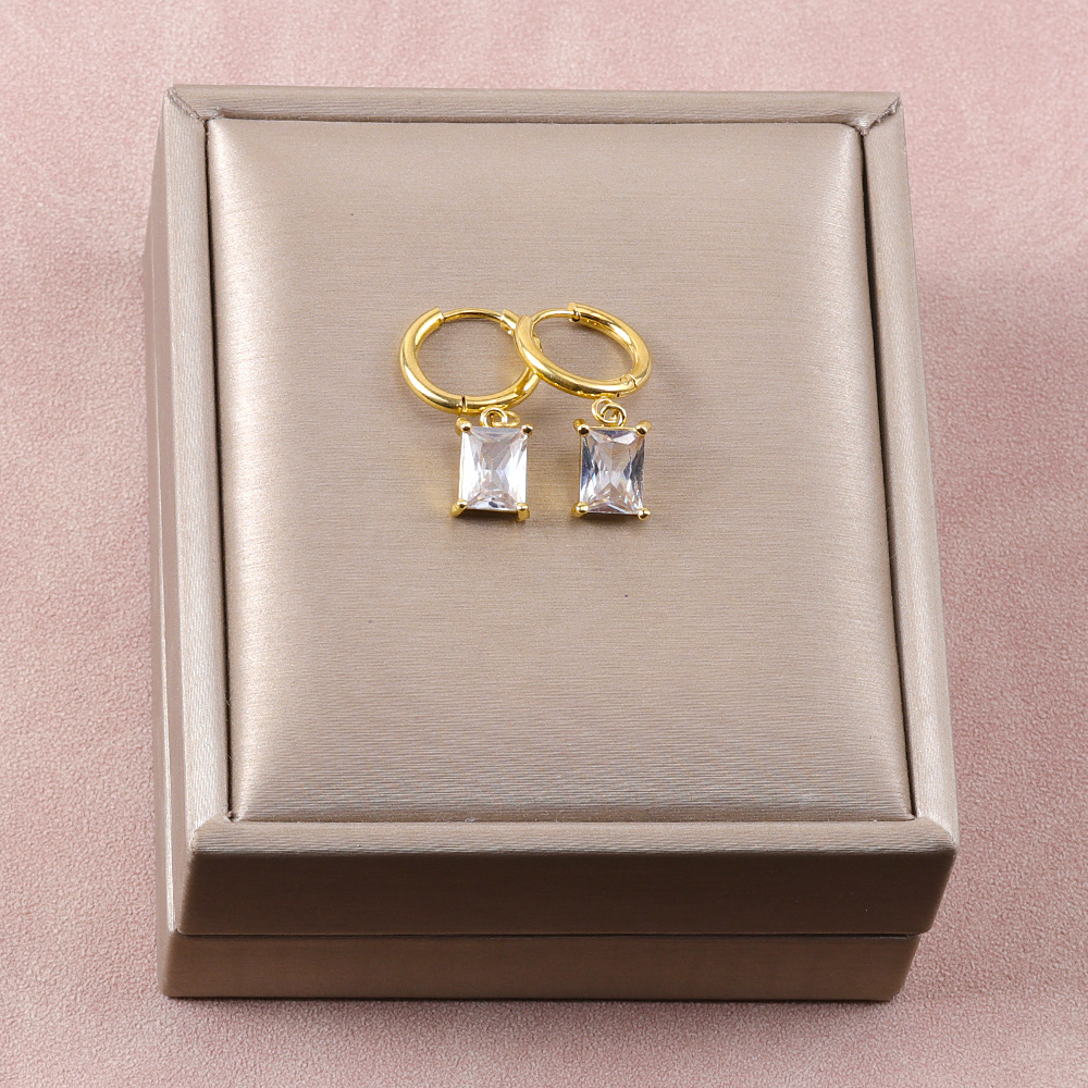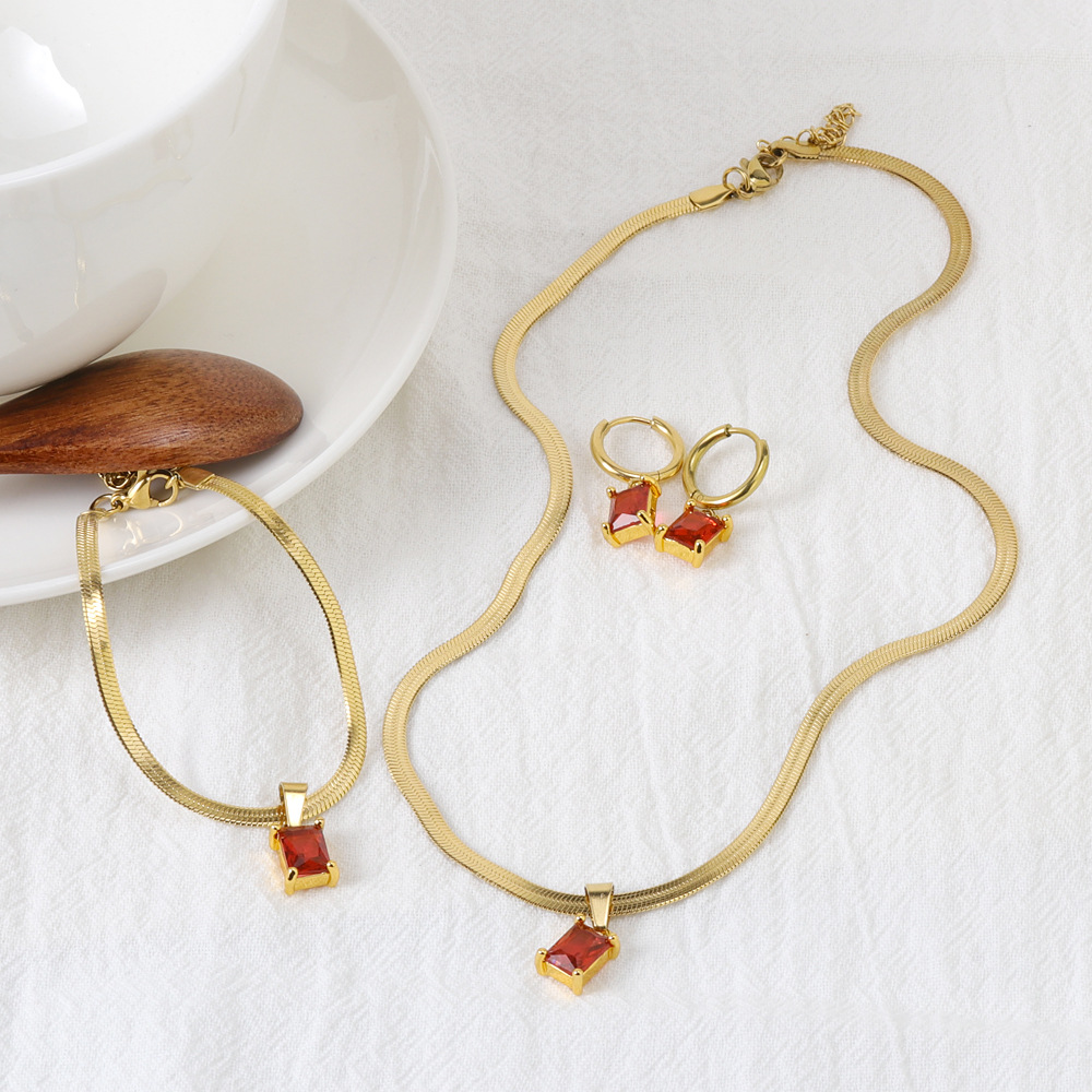 • Cross-Border Amazon Crystal Zircon Square Diamond Necklace Bracelet Earrings Set Women's Titanium Steel Clavicle Chain Jewelry Wholesale