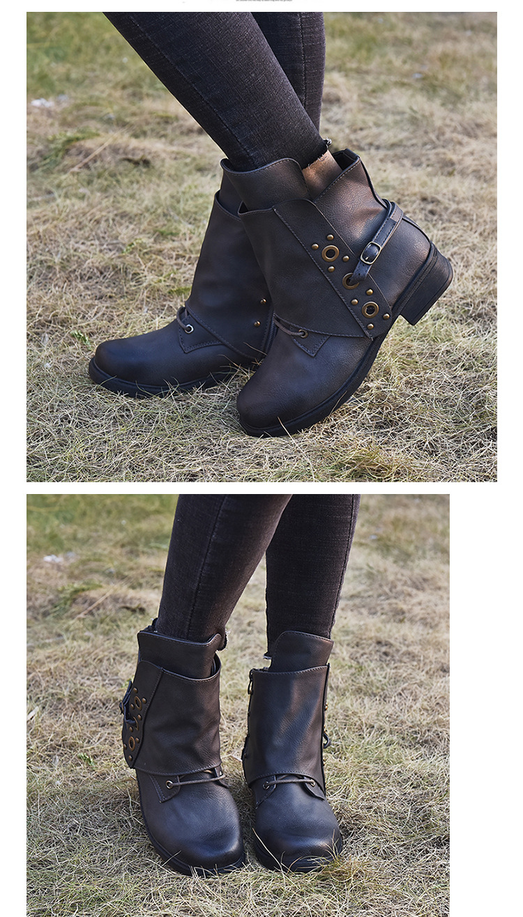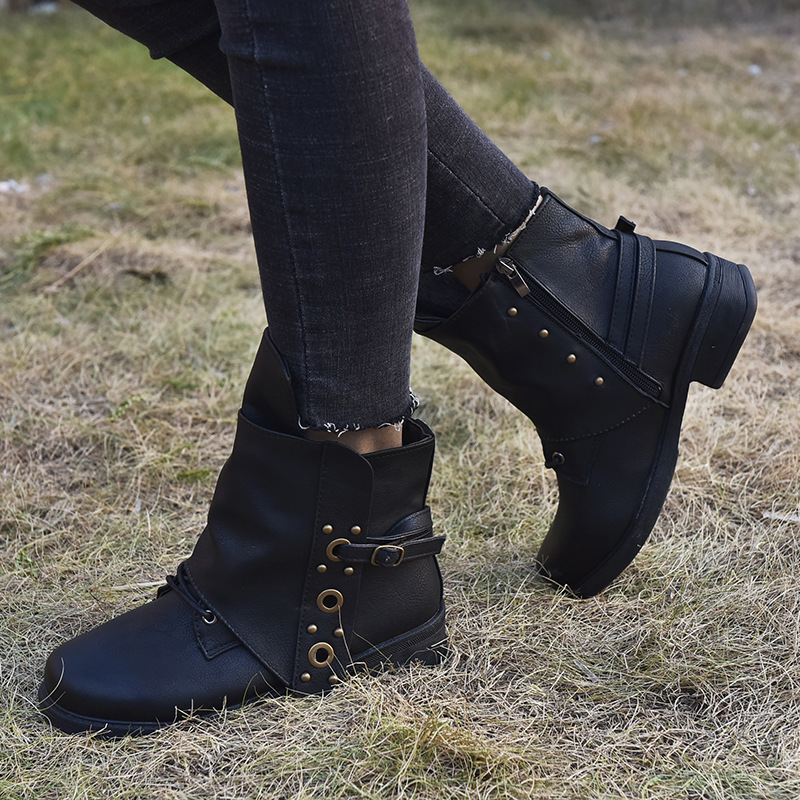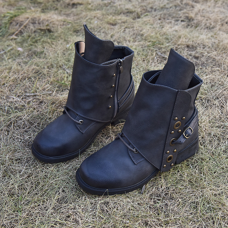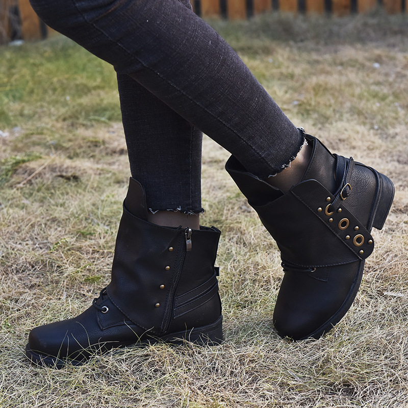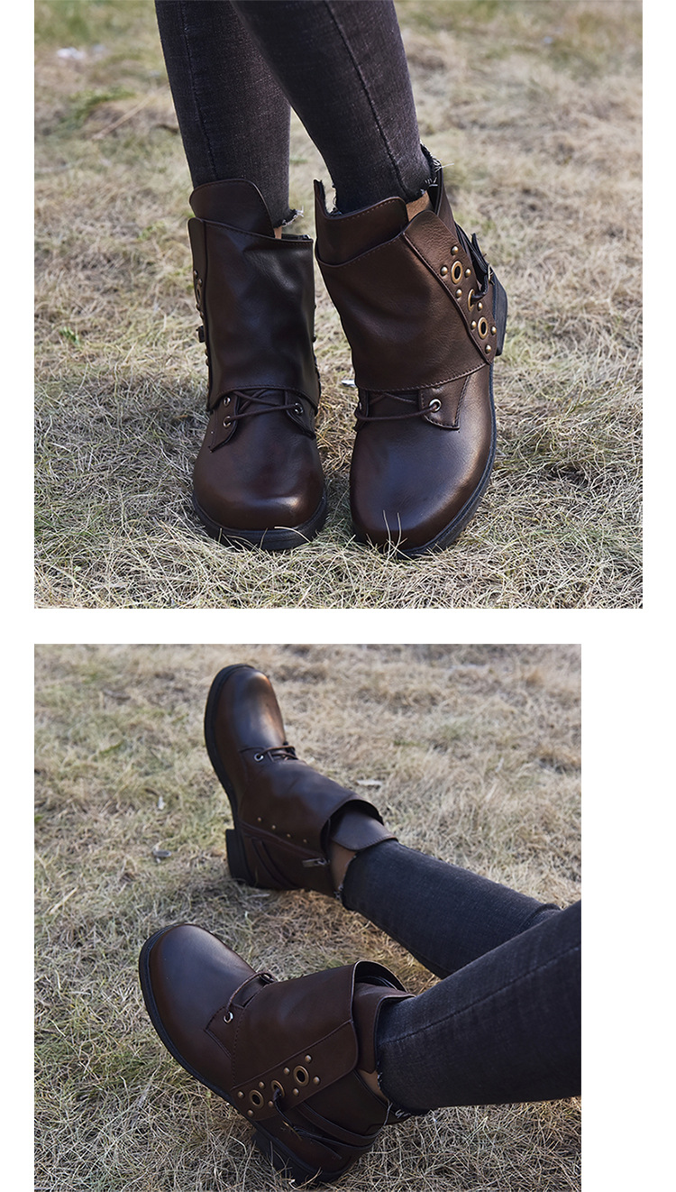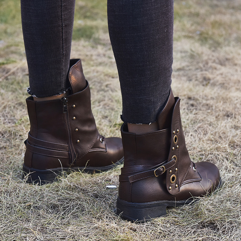 • 2020 New Autumn and Winter Wish Amazon Independent Station Large Size Retro Round Toe Side Zipper Women's Leather Boots