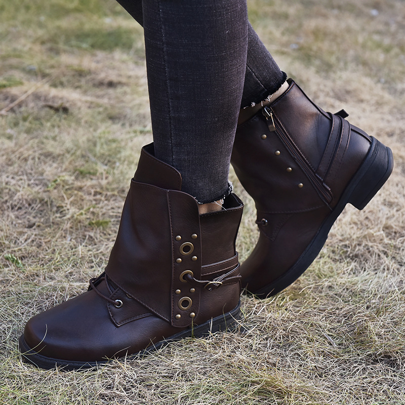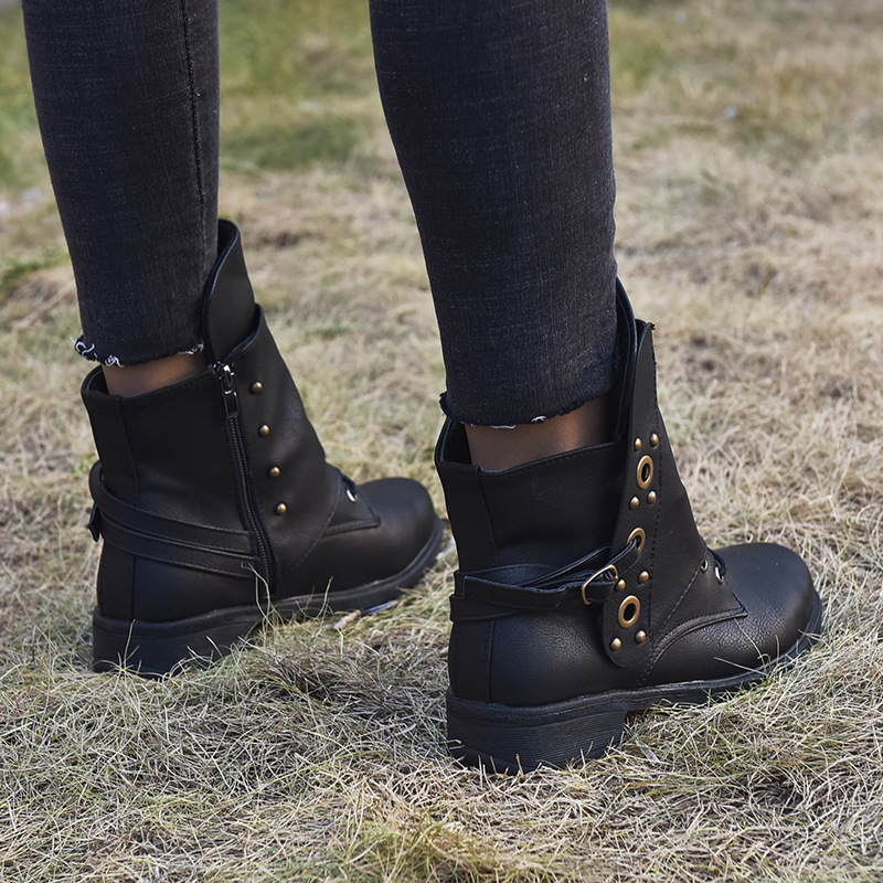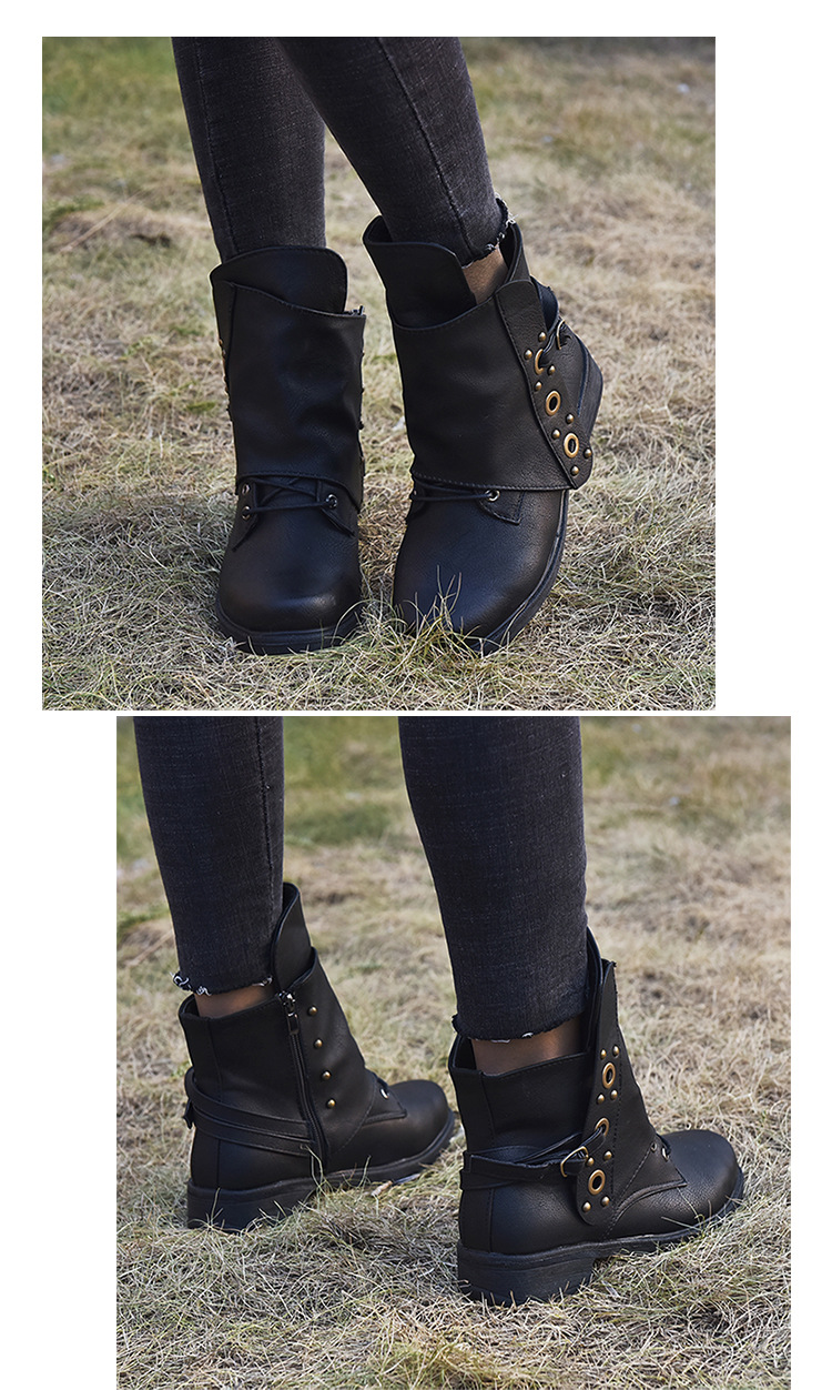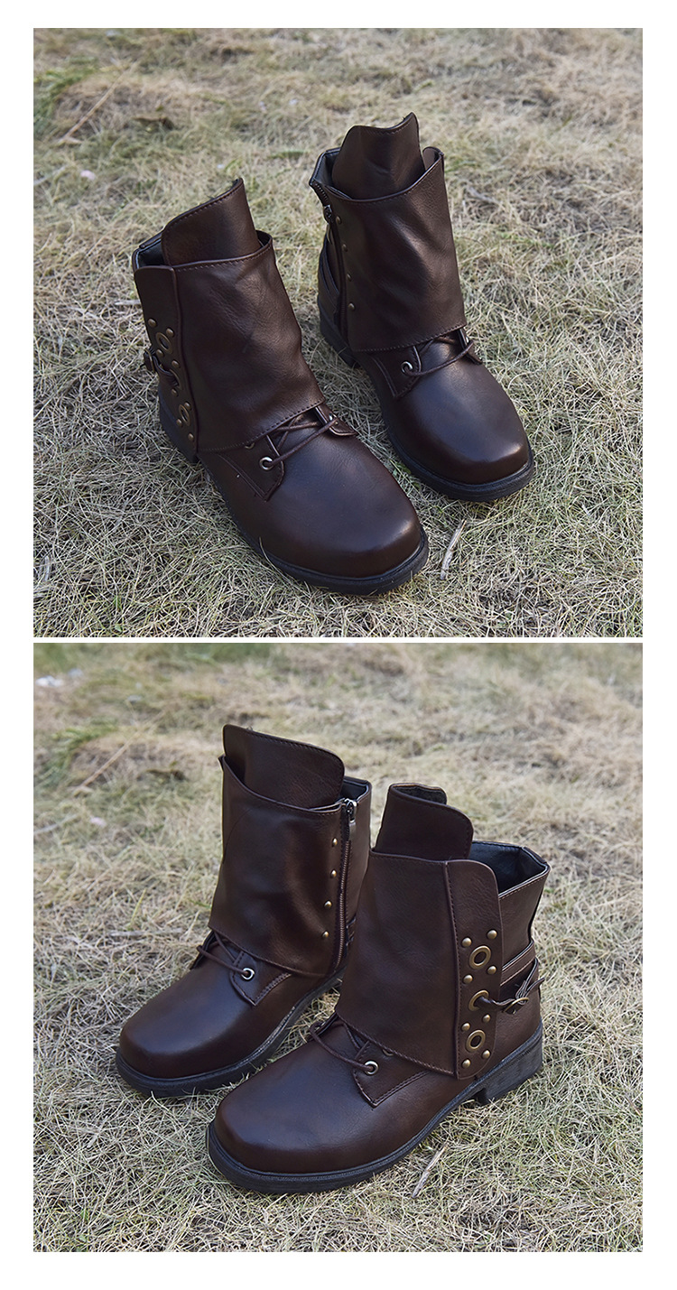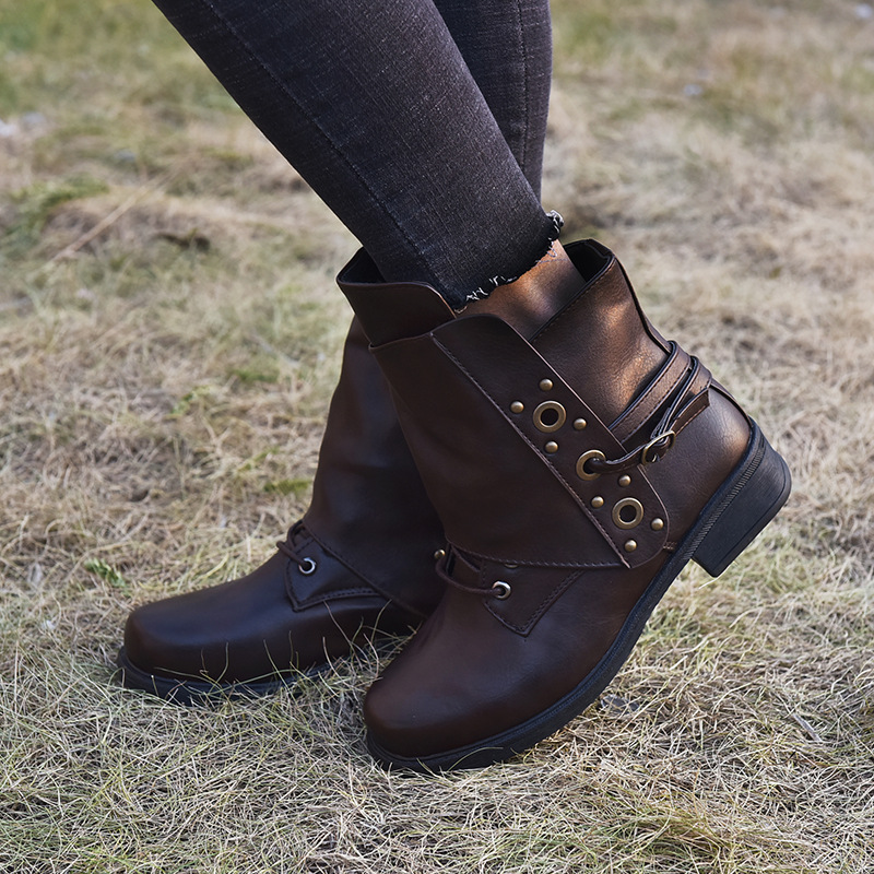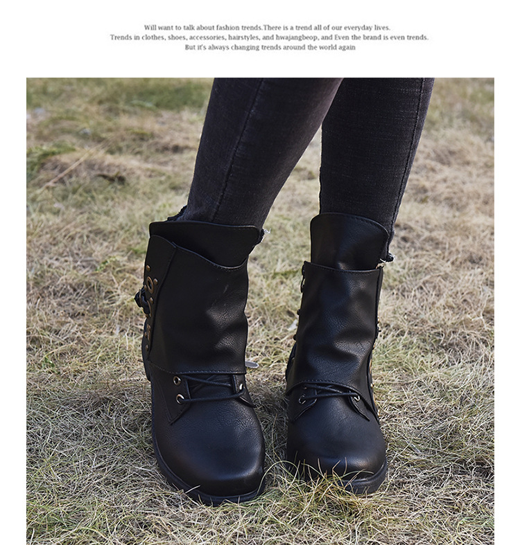 • 2020 New Autumn and Winter Wish Amazon Independent Station Large Size Retro Round Toe Side Zipper Women's Leather Boots
