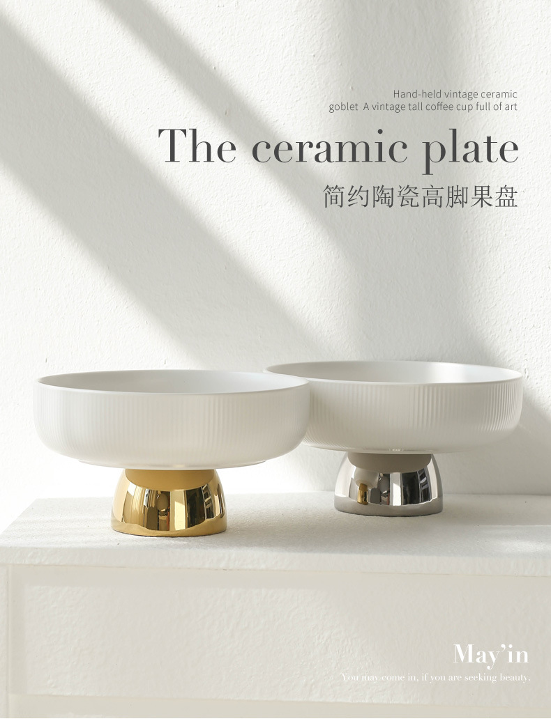 Nordic fashion simple Ceramic goblet fruit plate home living room living room fruit plate candy plate exhibition hall decoration