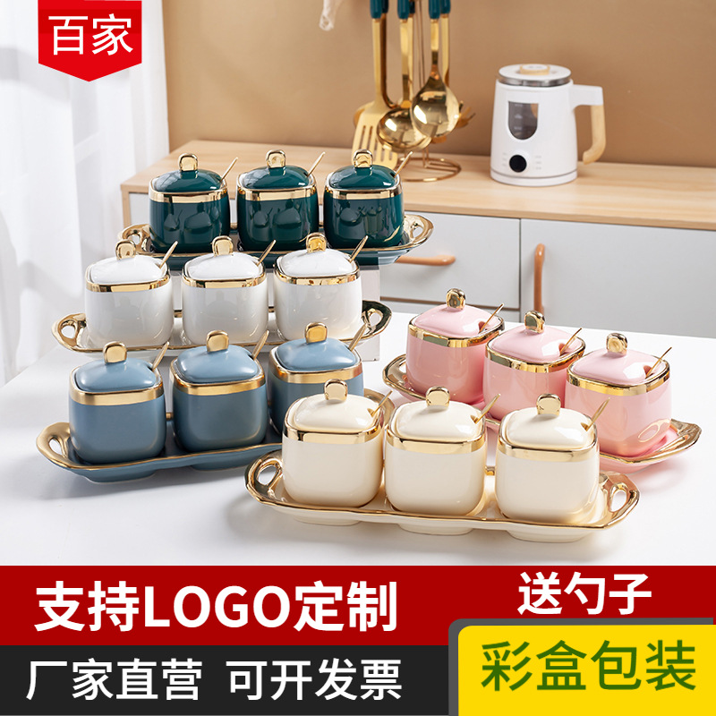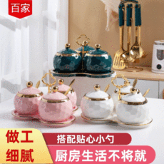 陶瓷调味罐三件套家用调料盒套装组合调料瓶盐味精收纳罐厨房用品