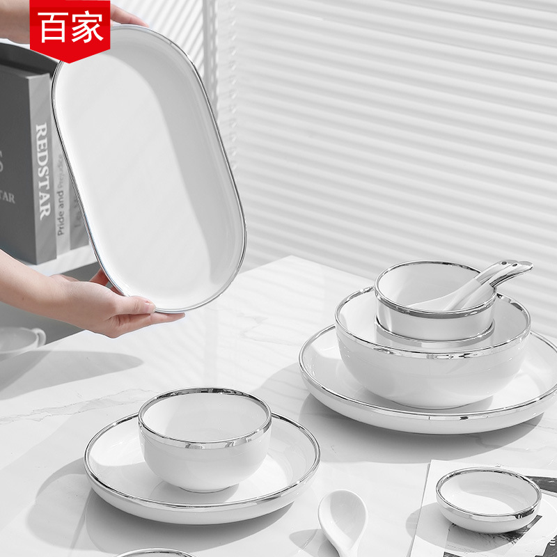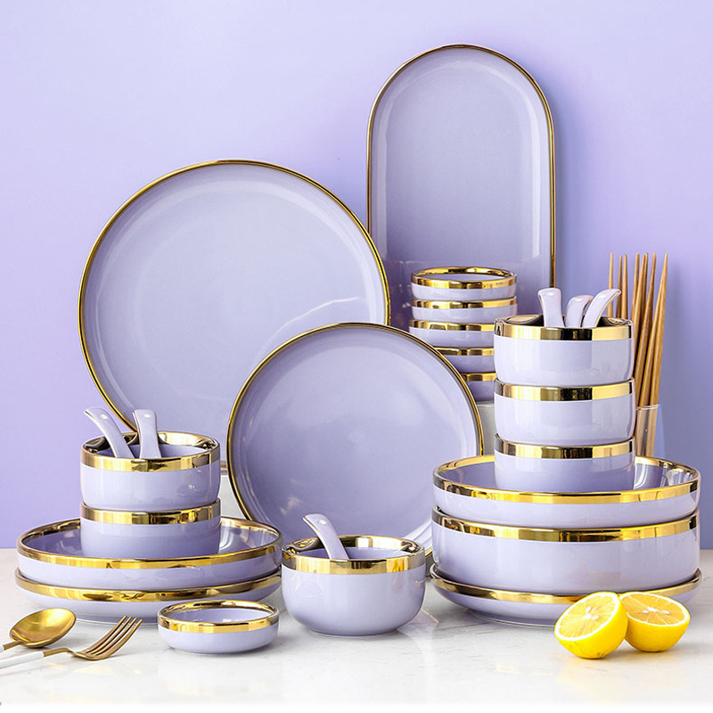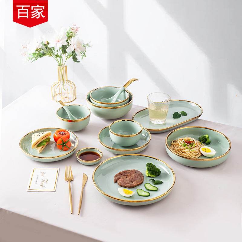Nordic Ins Light Luxury Bowl and Plate Set, Internet-Famous Household Dining Bowls, Ceramic Tableware, Electroplated Gold Dish Set Gift Box