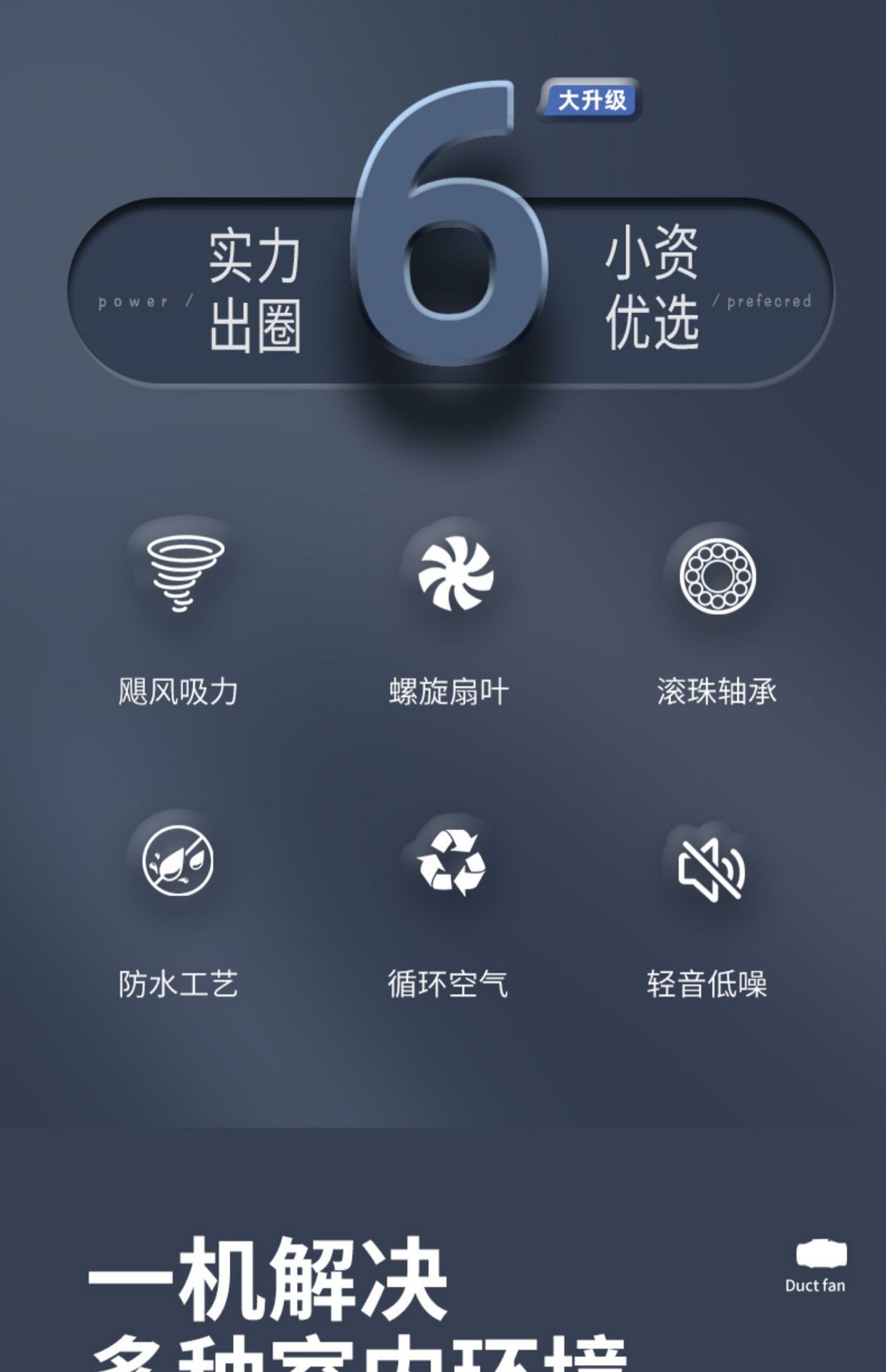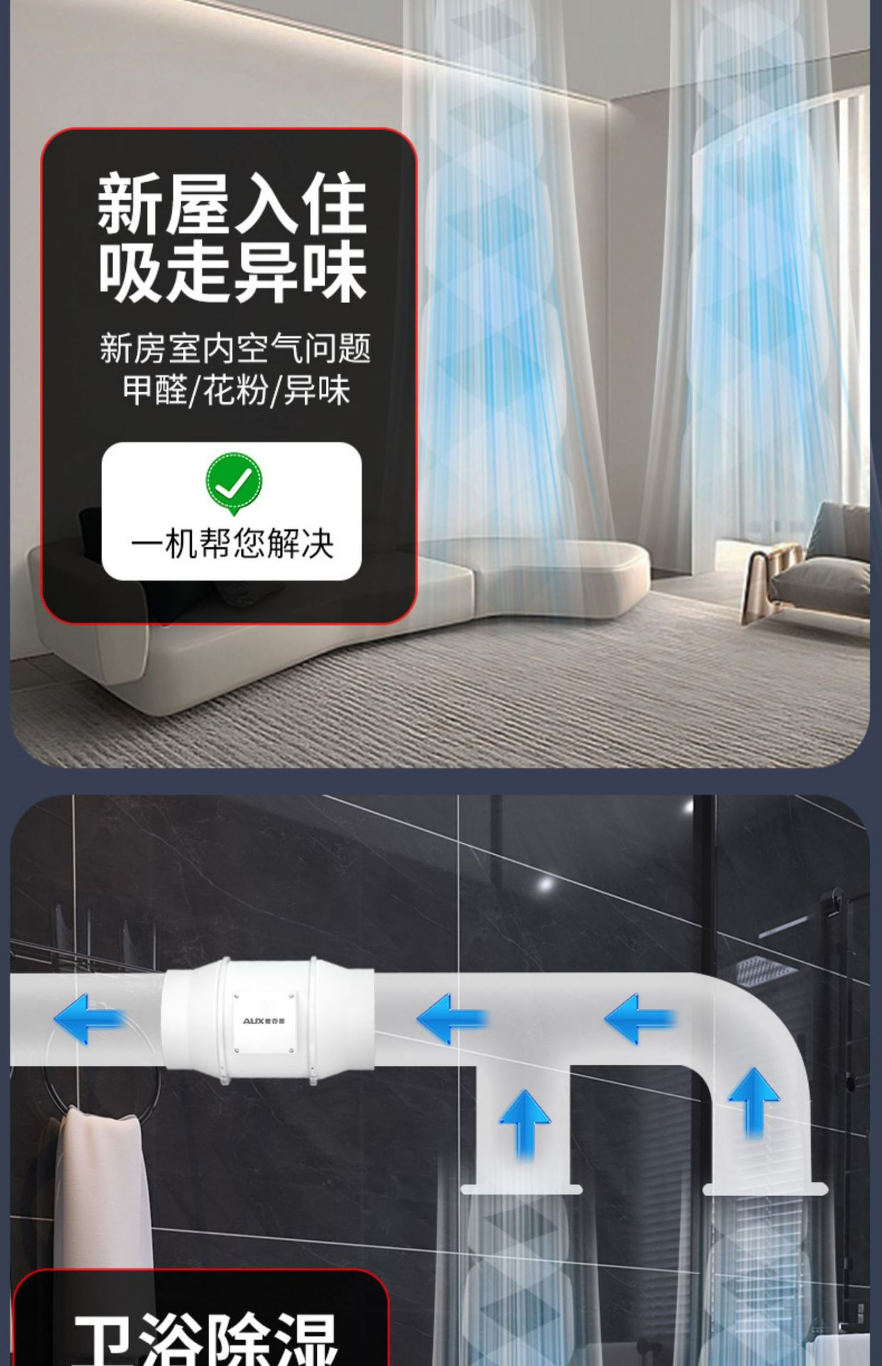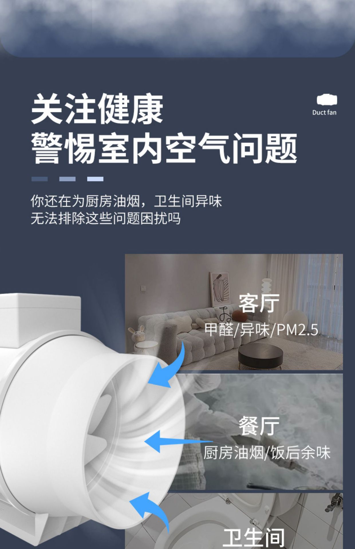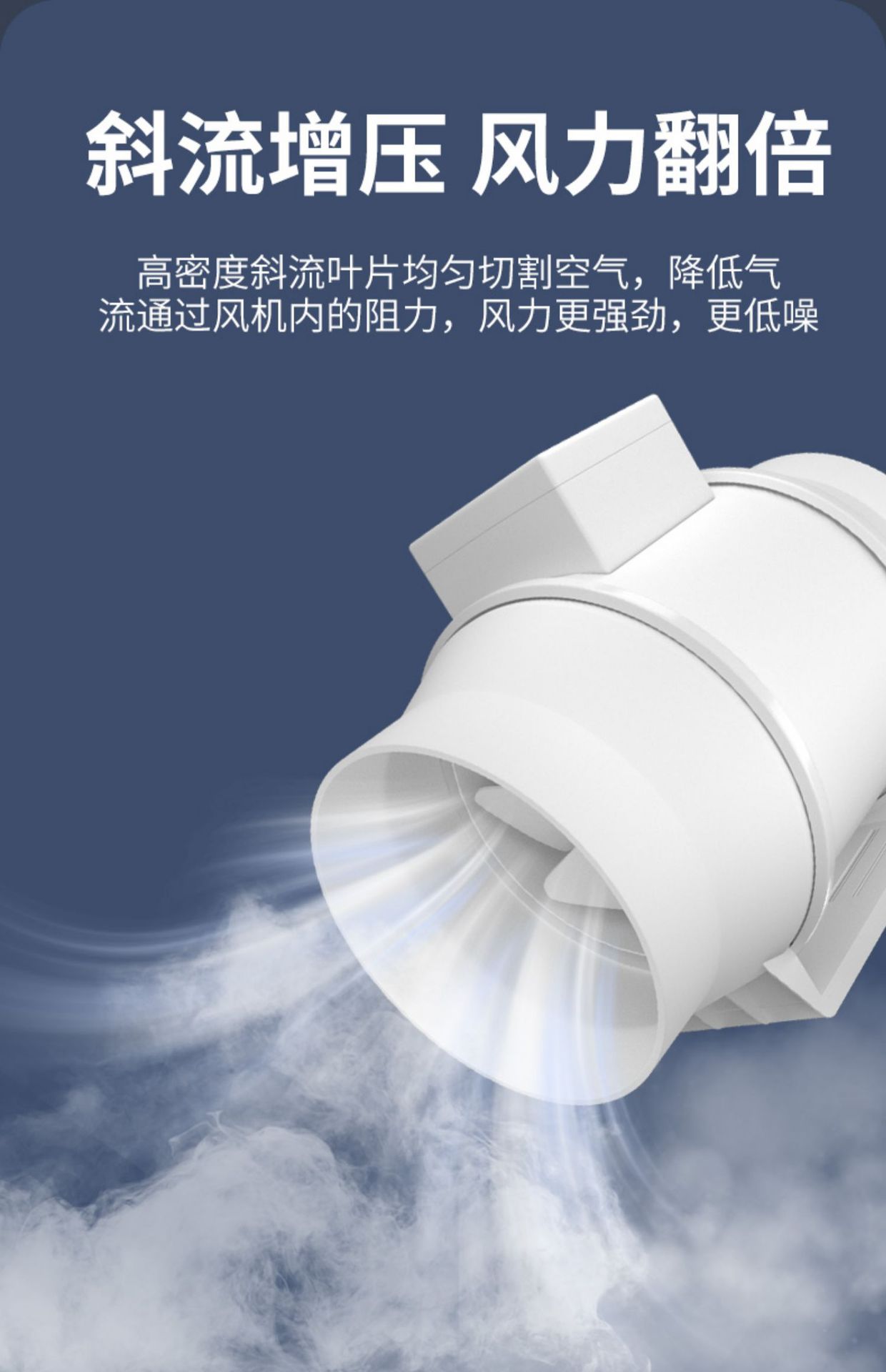• Oaks Exhaust Fan 8inch Booster Exhaust Fan Remote Control Two-Speed Diagonal Flow Duct Fan Fresh Air Ventilation Fan