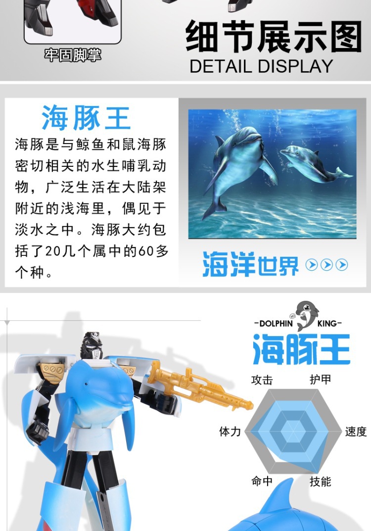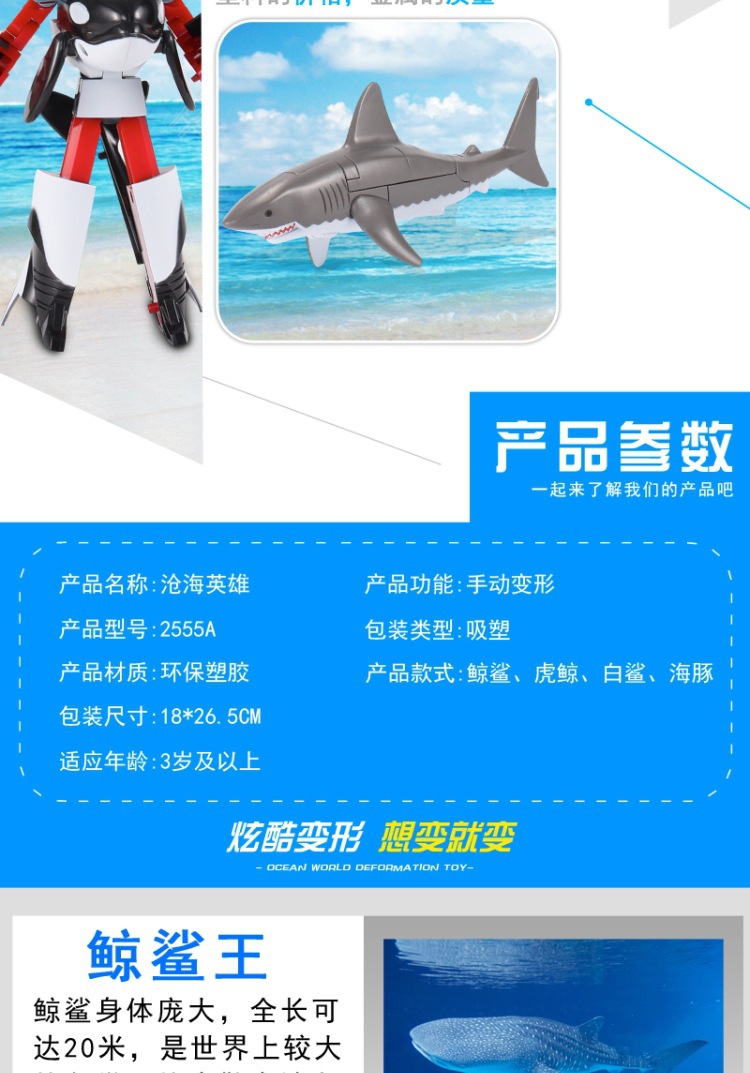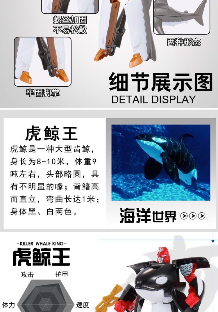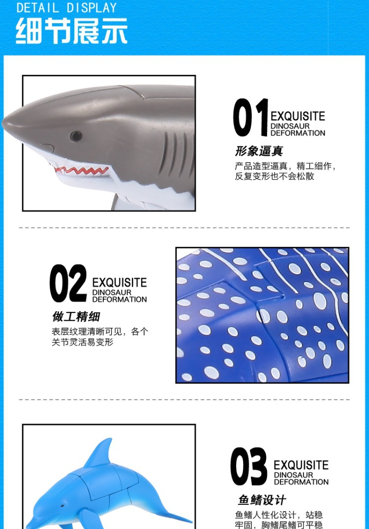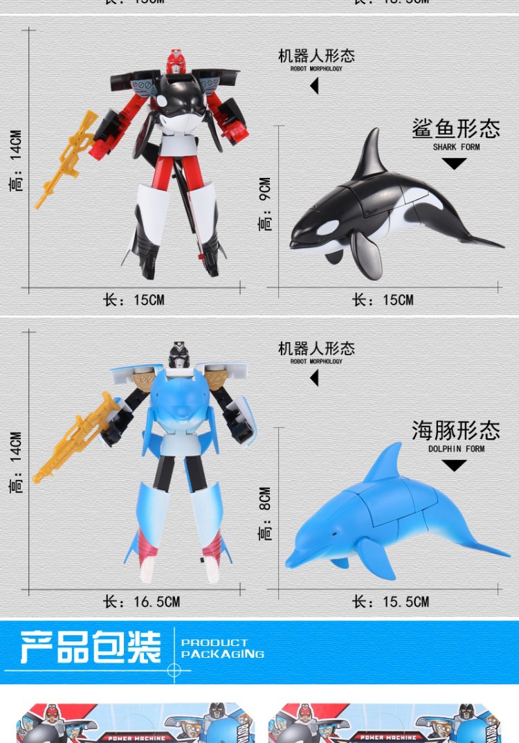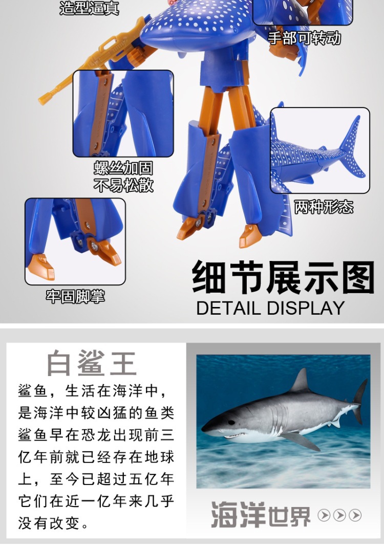 • Ocean Park Kingdom Transforming Dolphin Great White Shark Tiger Whale Shark Aquarium Robot Educational Toy Machine Warfare