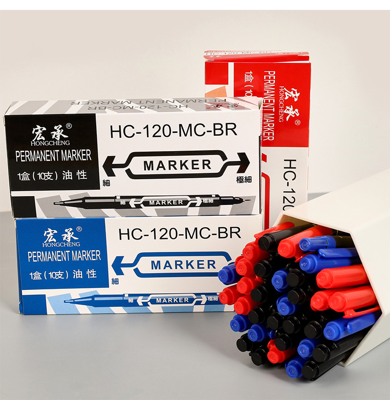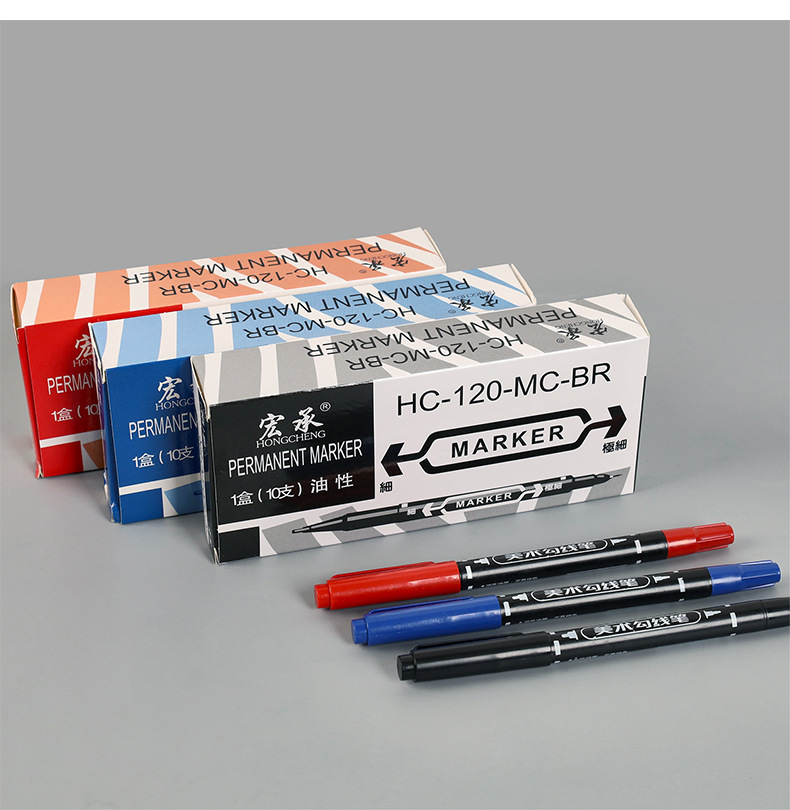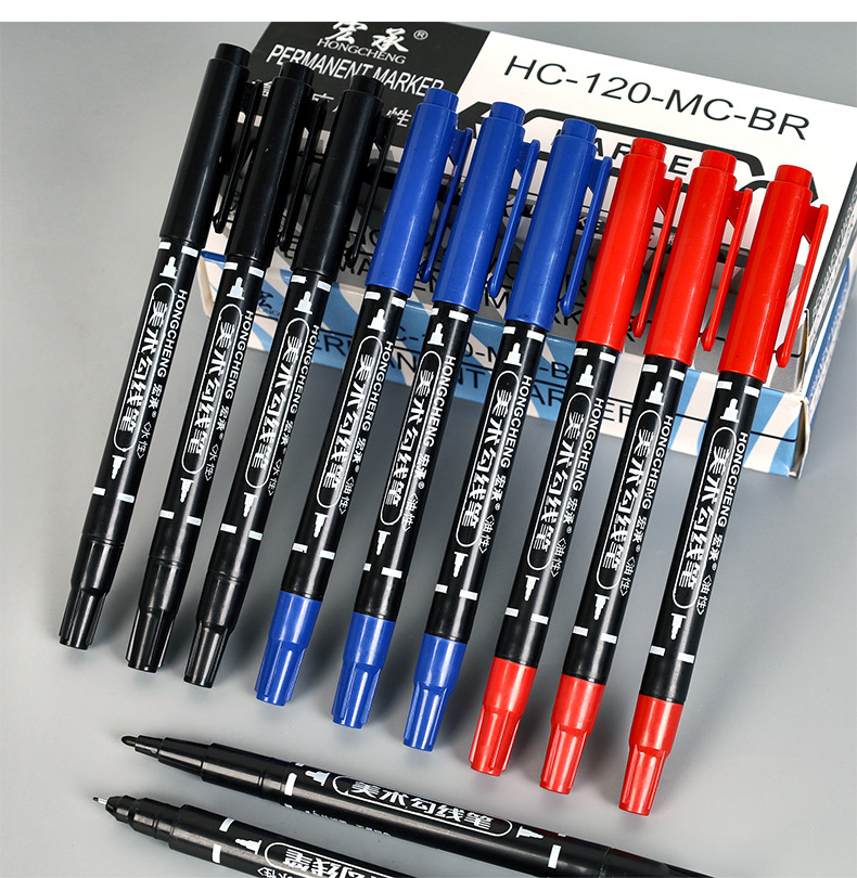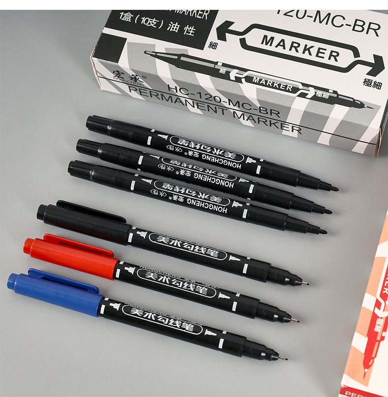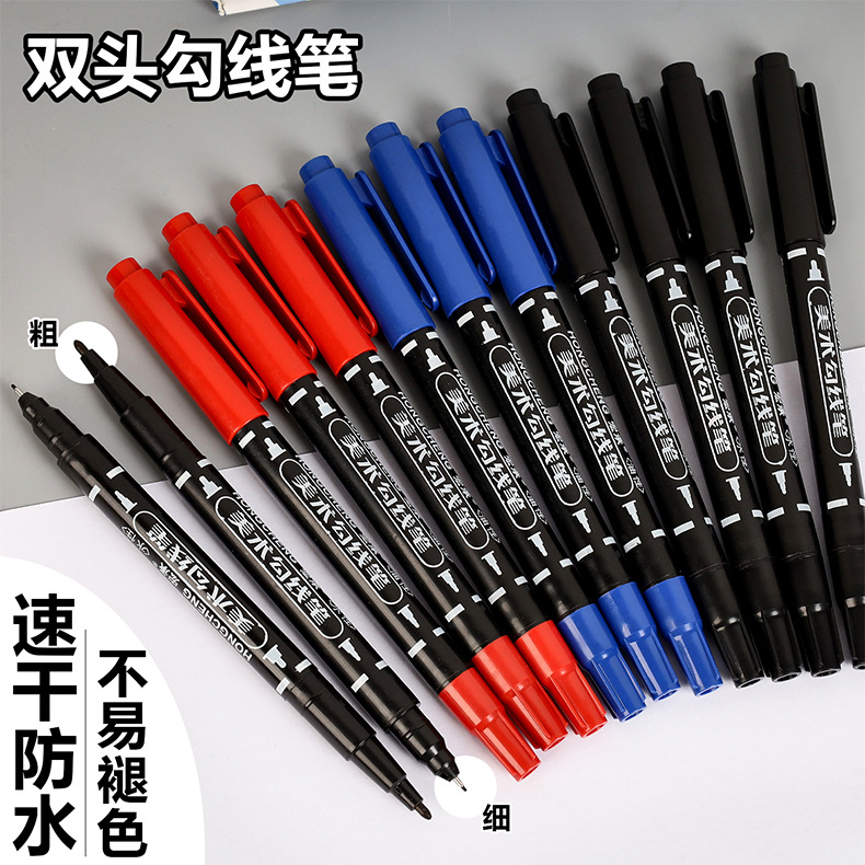 • Oily small double-headed marker children's drawing Goulianbi black red blue can't wipe off the quick-drying marker stationery wholesale