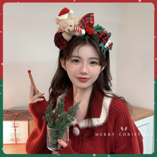 儿童小熊发箍圣诞节头饰礼物女蝴蝶结发夹子发卡拍照道具圣诞发饰