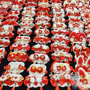 2025新年红色儿童发夹蝴蝶结发饰古风过年头饰中国风汉服发卡批发