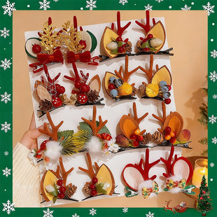 圣诞节头饰小女孩麋鹿森系发卡圣诞老人对夹儿童发夹鹿角圣诞发饰