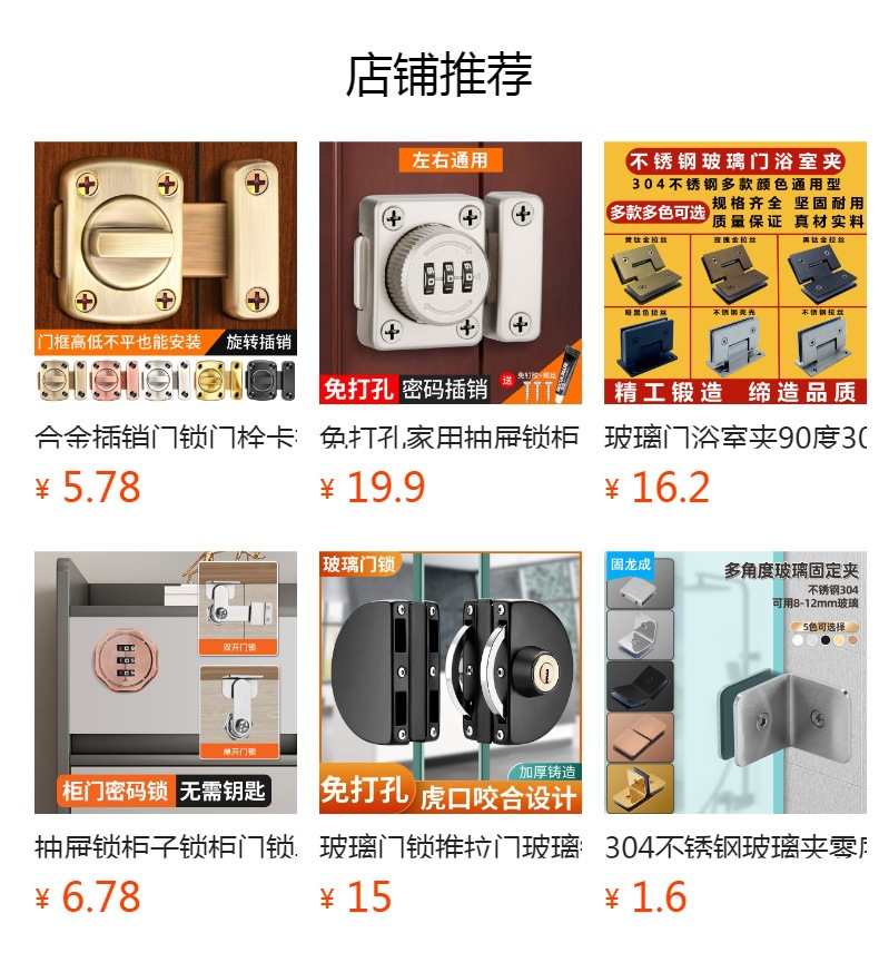 • Punch-free door buckle 90 degree sliding door lock latch barn sliding door lock buckle buckle toilet toilet door bolt