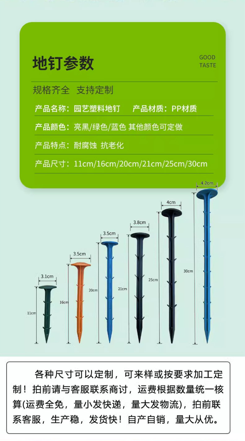 • Thickened and Extended Plastic Ground Nails for Greenhouse Mulch Black Ground Cloth Barbed Nails Gardening Anti-Aging