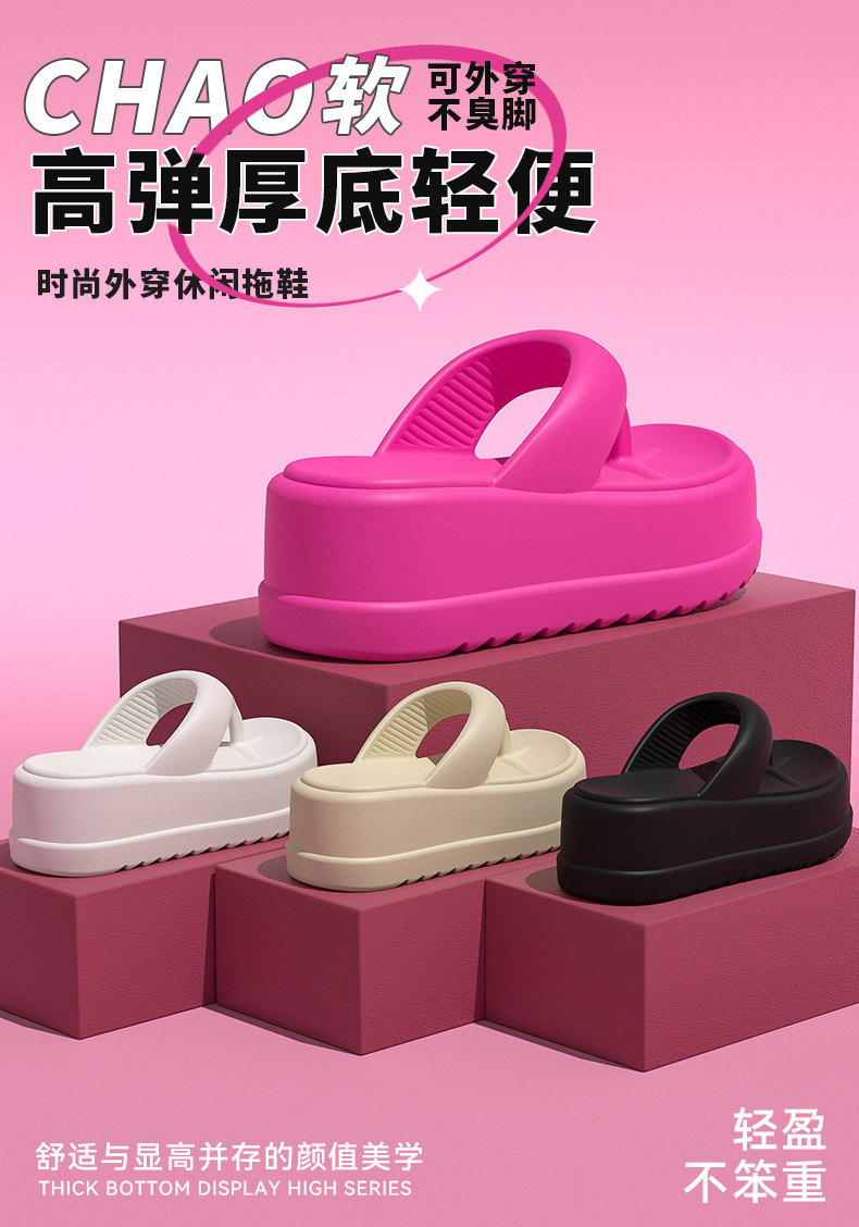 • Popular Thick-Soled Flip-Flops for Women 2025 New Summer Outer Wear Increased Non-Slip Seaside Beach Shoes That Feel Cool When You Step on Shit