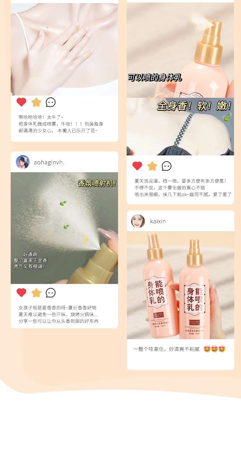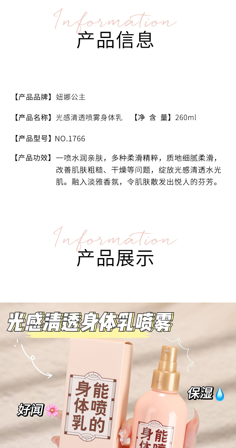 • Princess niuna body lotion spray fragrance moisturizing autumn and winter Hydrating Body lasting fragrance refreshing non-greasy