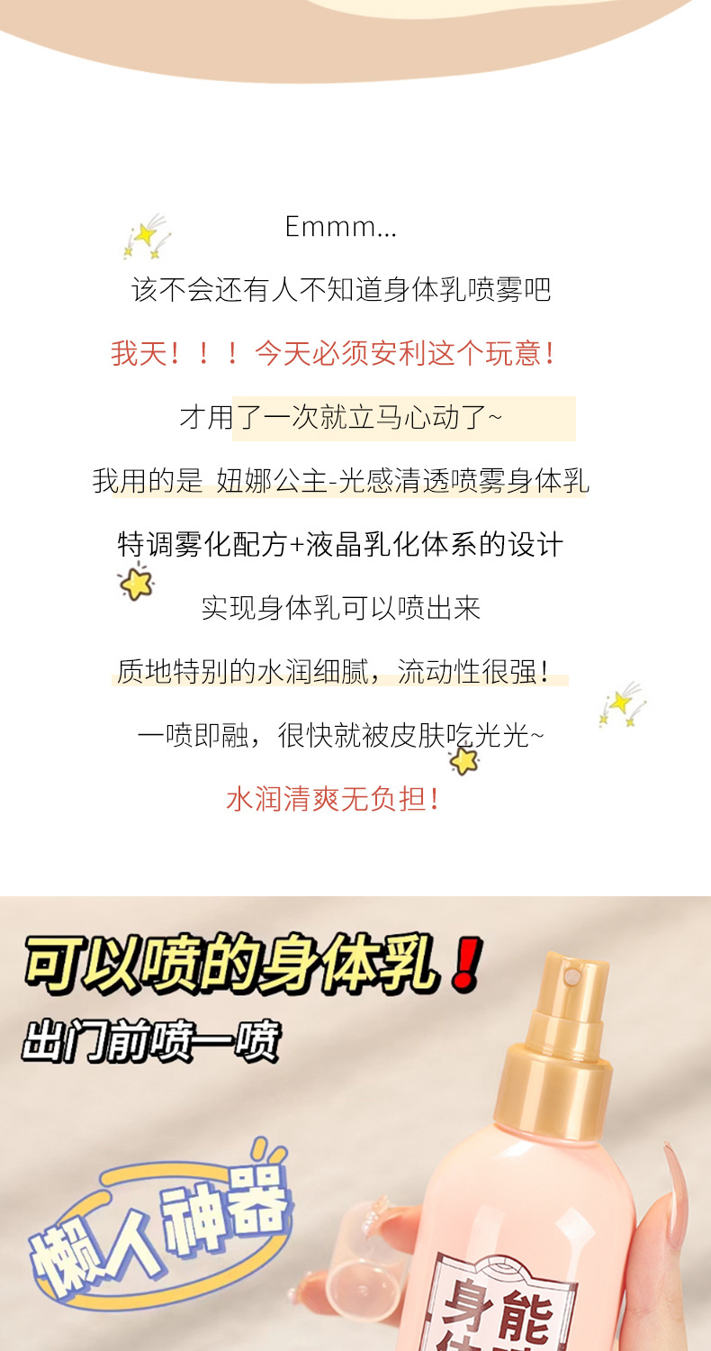 Princess niuna body lotion spray fragrance moisturizing autumn and winter Hydrating Body lasting fragrance refreshing non-greasy