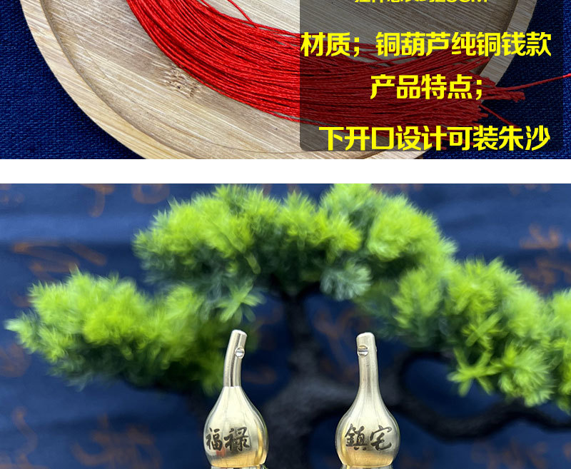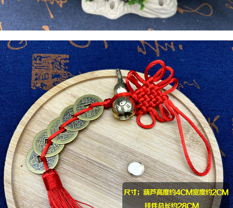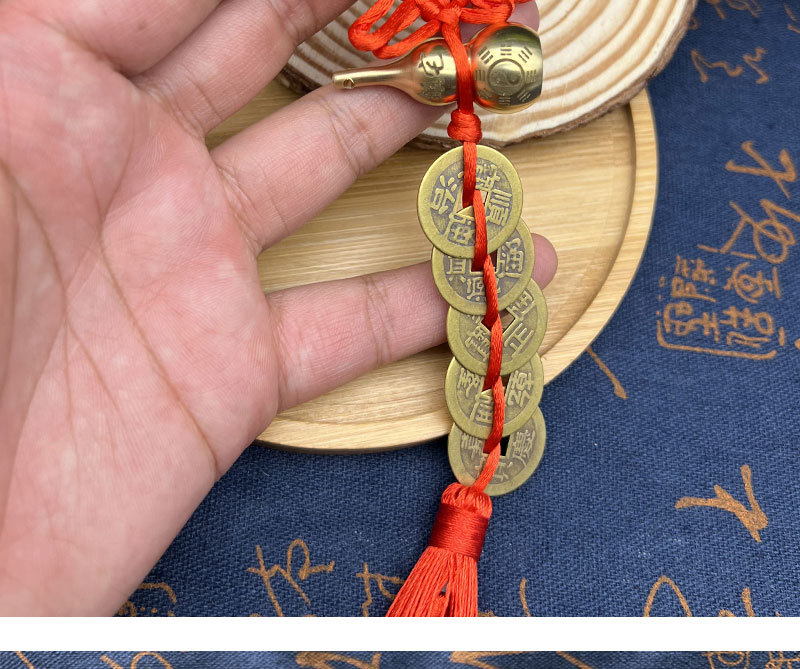 • Pure copper gourd lettering pure copper five Emperor money door to door Chinese knot pendant home accessories manufacturers wholesale stall