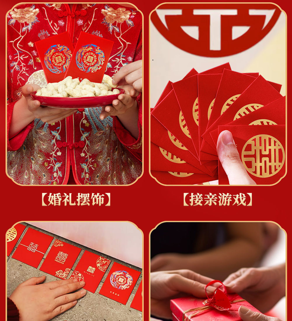 • Red Envelope Wedding Mini Trumpet Wedding Newlywed Throwing and Picking up the Bride to Block the Door and Happy Words Small Red Envelope Bag