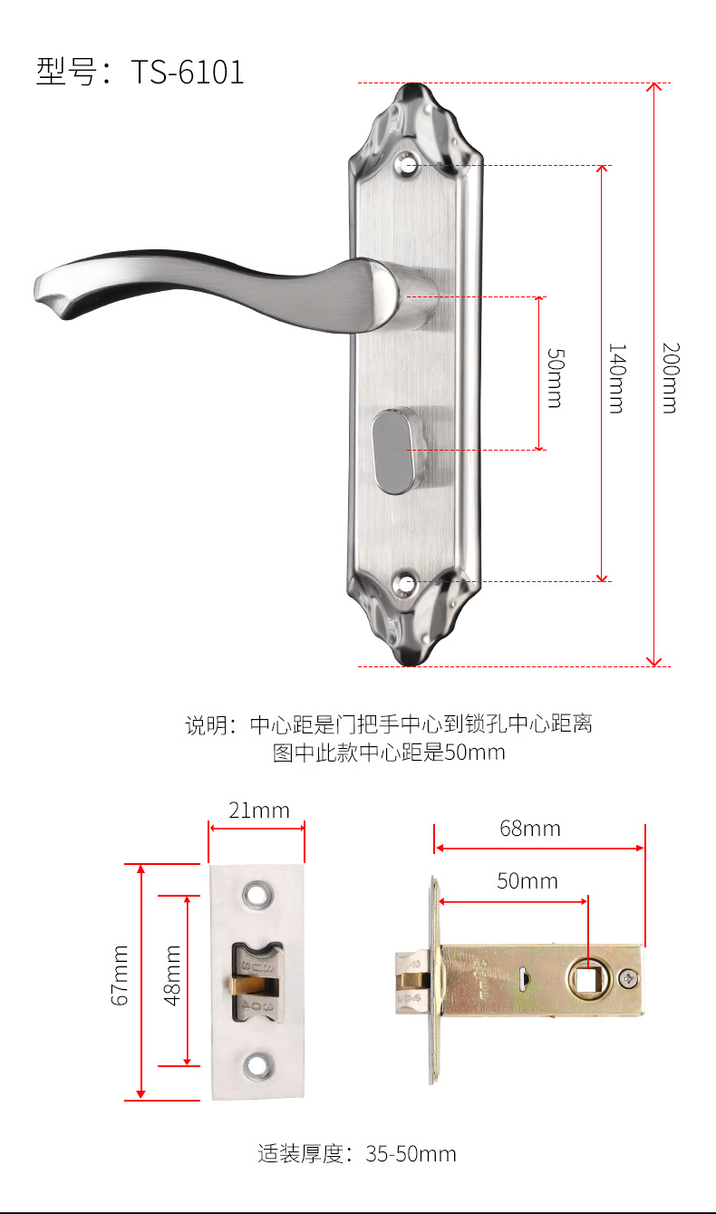 TS6202(155 pitch, 50 lock body, copper electric opening)