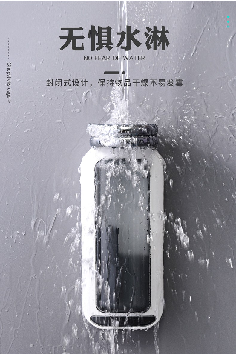 • New Kitchen Tableware Spoon Storage Rack Punch-Free Wall-Mounted Drain Chopstick Holder Storage Box Rotating Household Chopstick Cage
