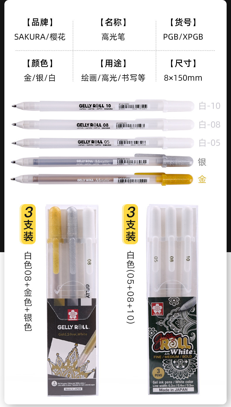 Sakura Highlighter Pen Japan Sakura Black Card Hand-Drawn White Pen Gold Oil-Based Pen Silver Marker Pen Wholesale