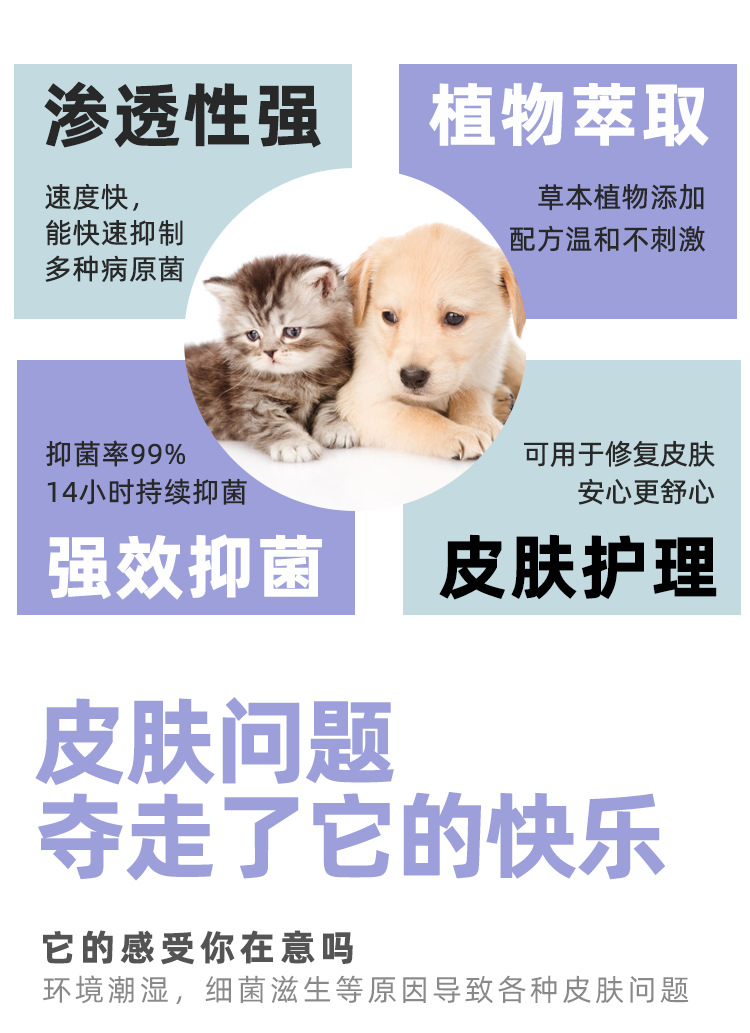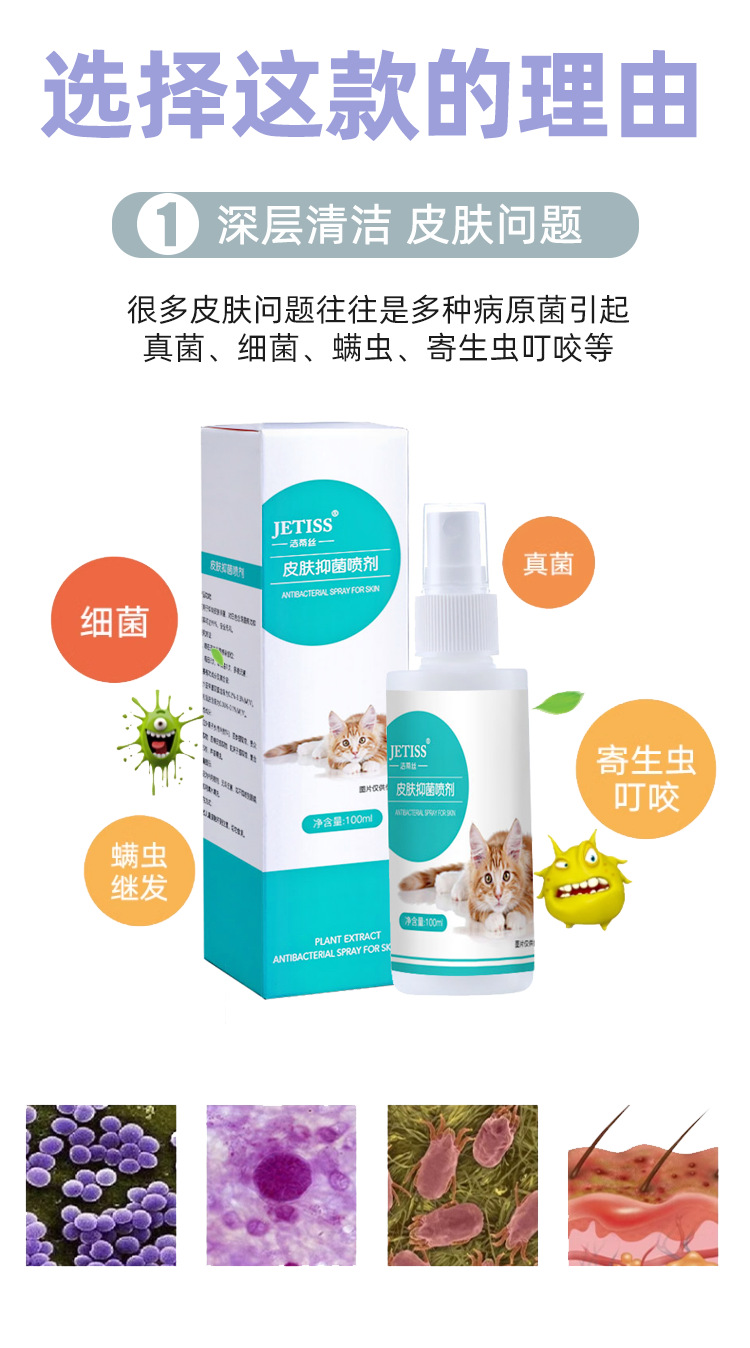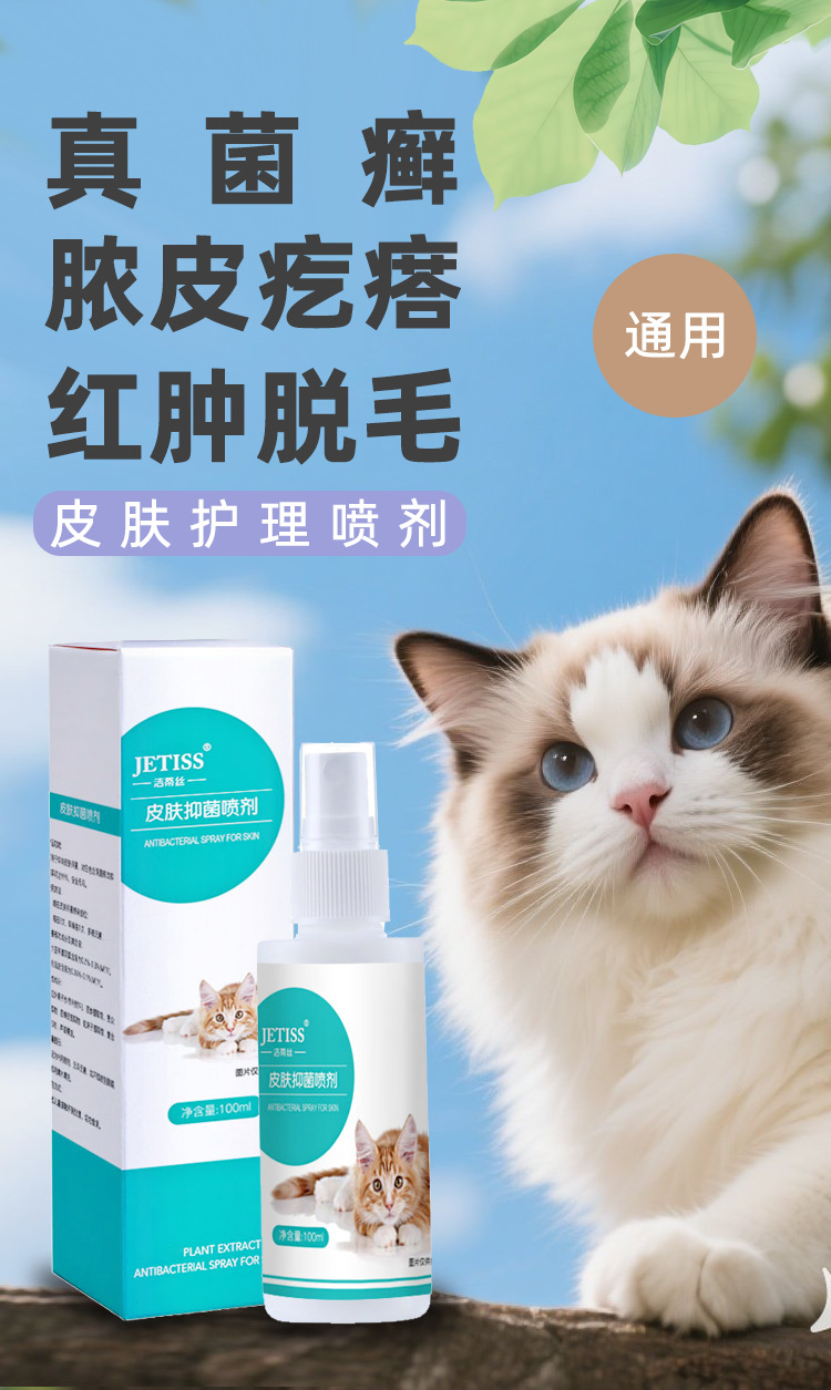 • Jiesis Pet Cat and Dog Herbal Mild Antibacterial Fungal Ringworm Spray Black Chin Red Skin Spray
