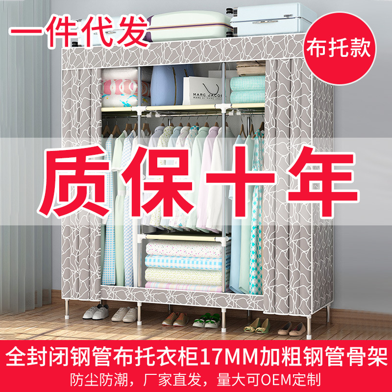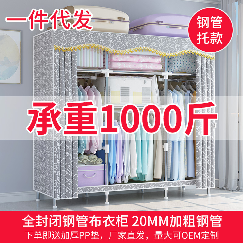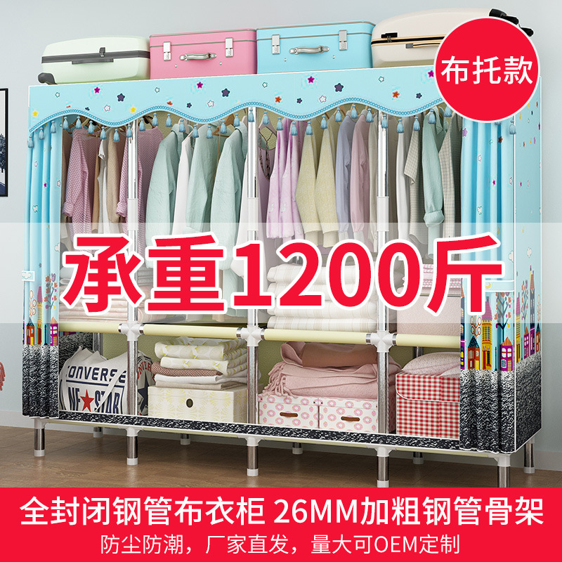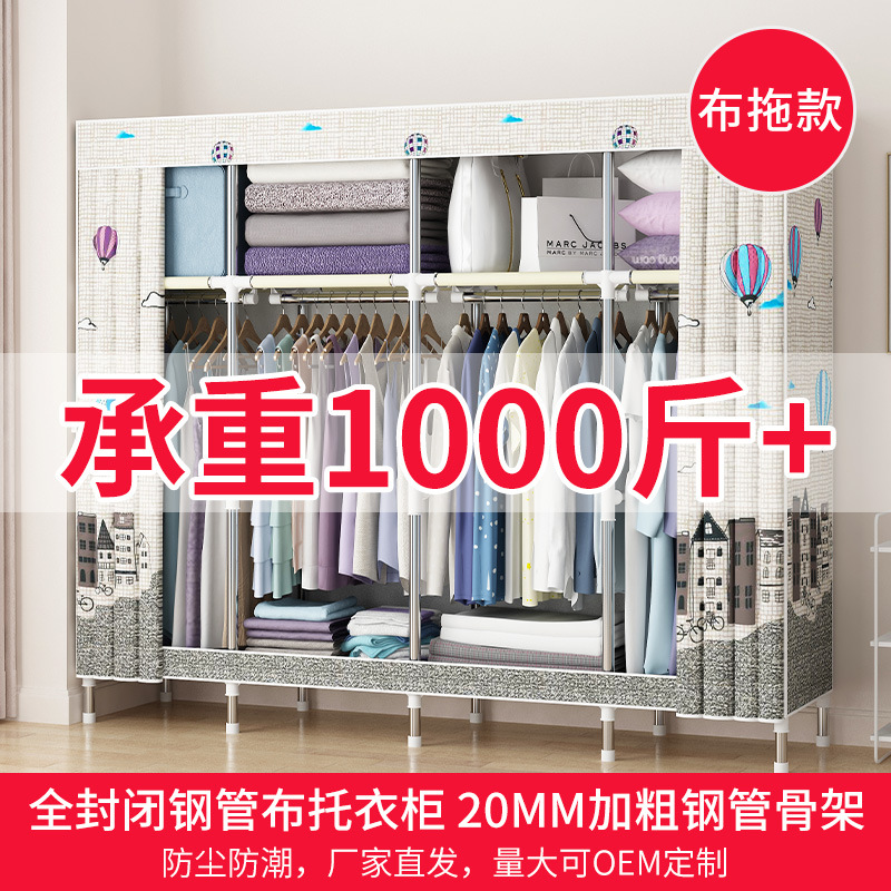• Simple Cloth Wardrobe Household Bedroom Alloy Interface Wardrobe Steel Pipe Thick Reinforced Economical Assembly Storage Wardrobe