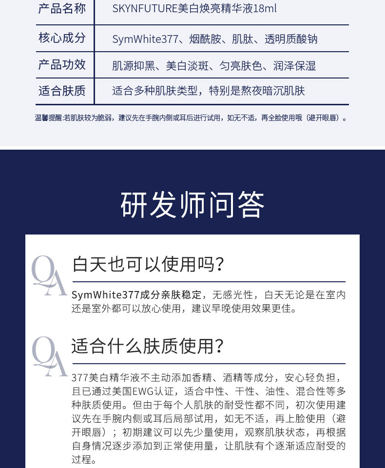 • Skin Future 377 Whitening and Spot Brightening Essence 18ml Light Small White Bottle Niacinamide Brightens Skin