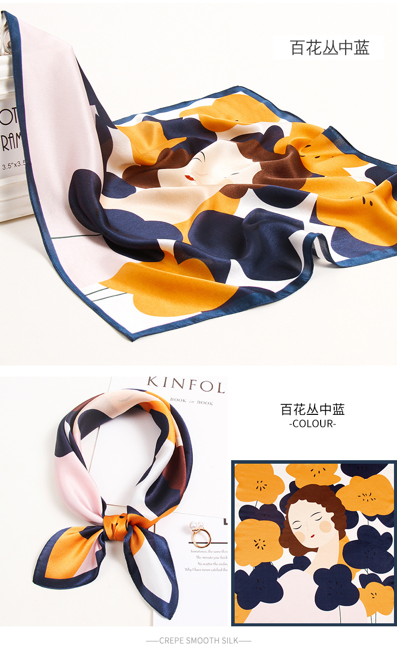 Matching Artifact 100% Mulberry Silk Square Scarf for Women, Decorative Matchinging Headscarf and Scarf, Fashionable Sense for Girls and Best Friends