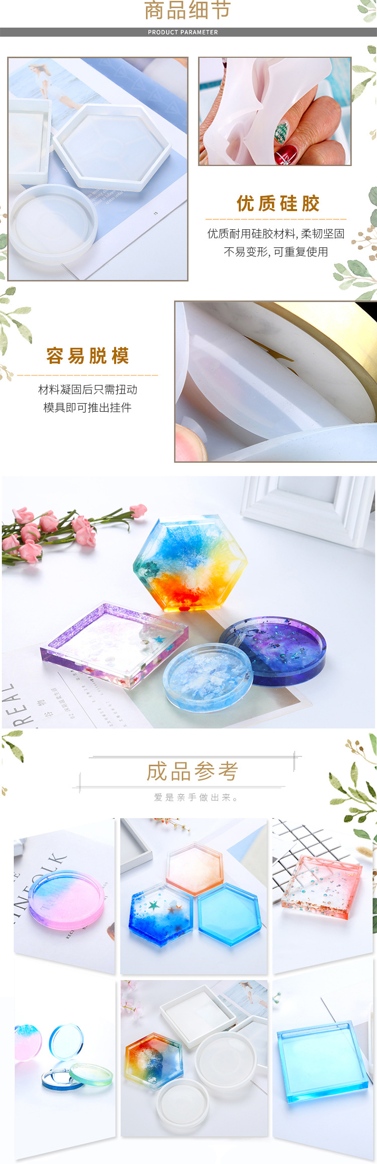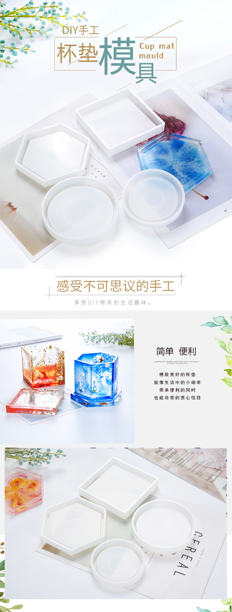 • Glue Dripping Mold Round Hexagonal Square Coaster Handmade Crystal High Permeable Resin Silicone Mold Ornaments