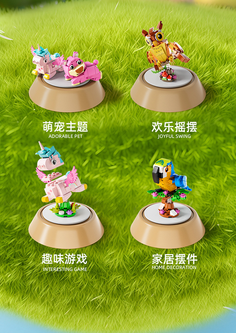 • Square Orange 8286 Animal Cute Pet Rocking Parrot Camel Eagle Elephant Horse Assembly Model Children's Assembly Building Blocks