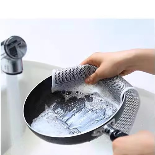 • Steel Wire Dishwashing Cloth Daily Cleaning Cloth Mesh Non-Stick Oil Rag Kitchen Stove Dishwashing Pot Cleaning Cloth Decontamination