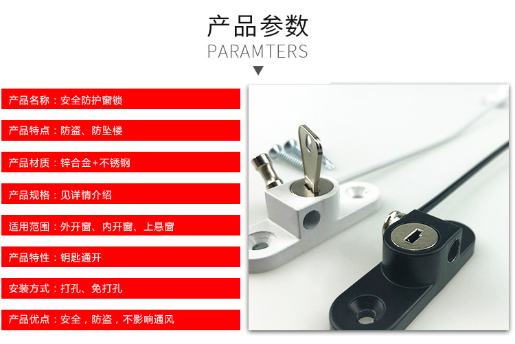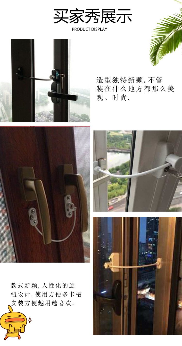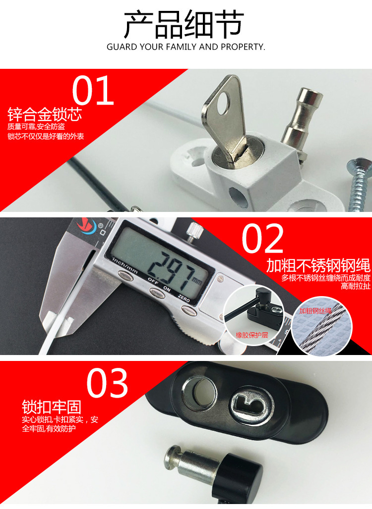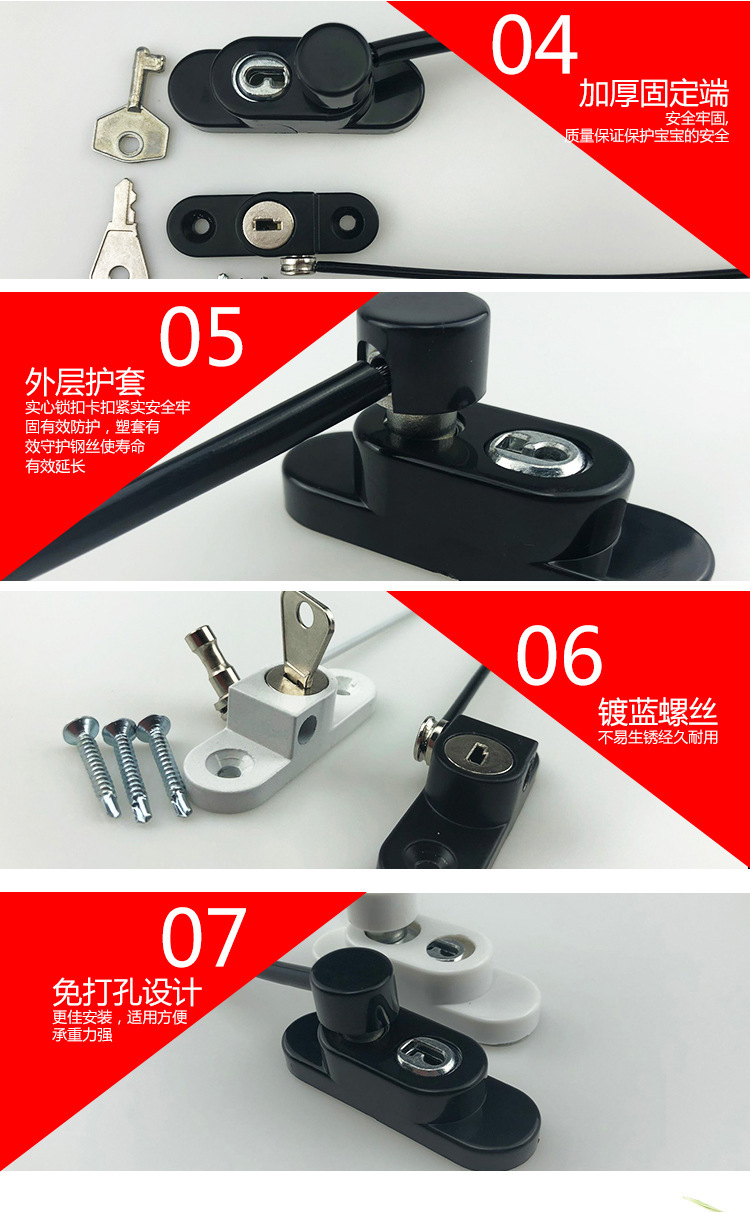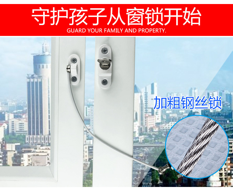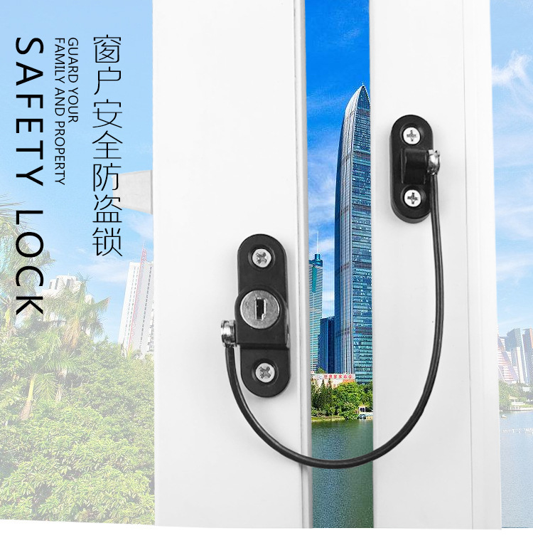 • Wire rope window lock aluminum alloy sliding door casement window anti-theft safety lock plastic steel window lock stopper