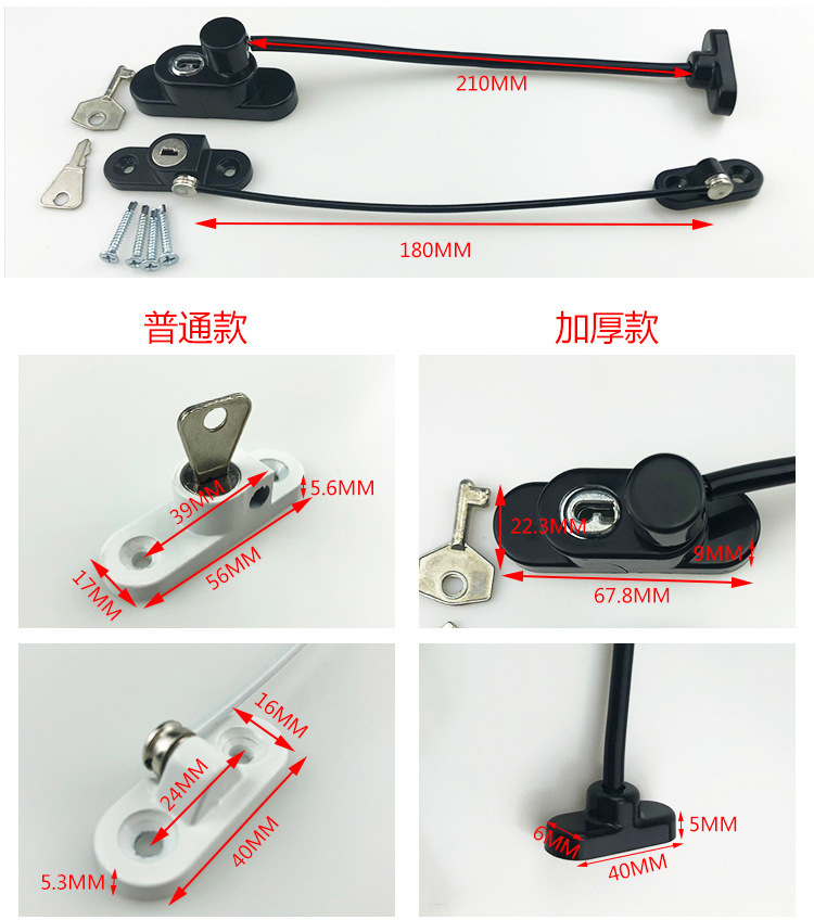 Wire rope window lock aluminum alloy sliding door casement window anti-theft safety lock plastic steel window lock stopper