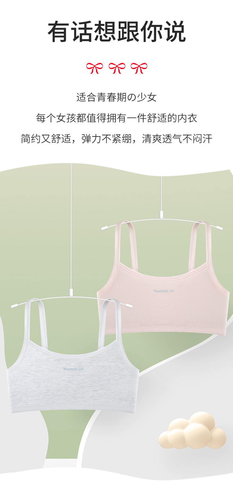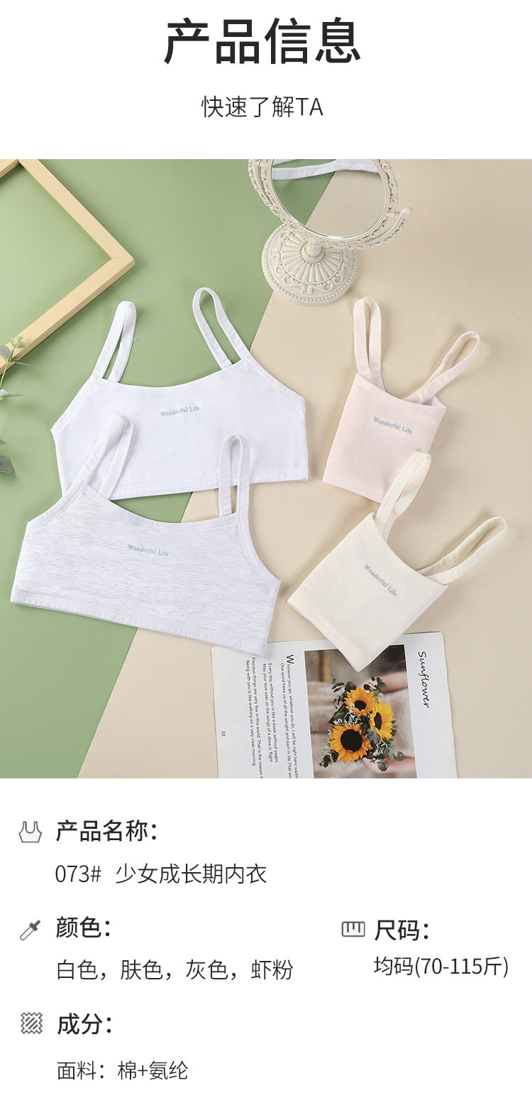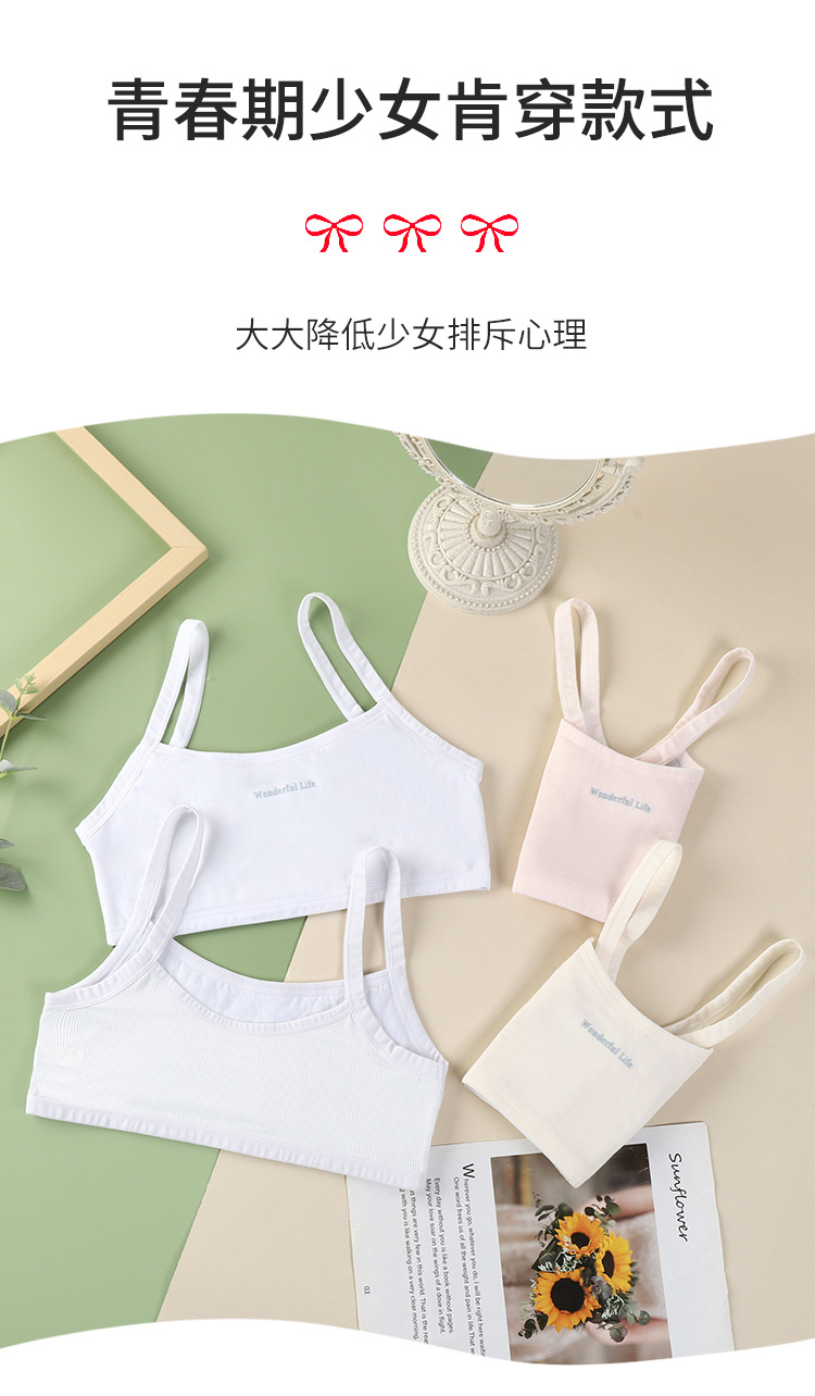 • Underwear Pure Cotton Girls Intimates Small Vest Adolescent Primary School Students Junior High School Kidsren Development Period Bra Bra Inner Wear