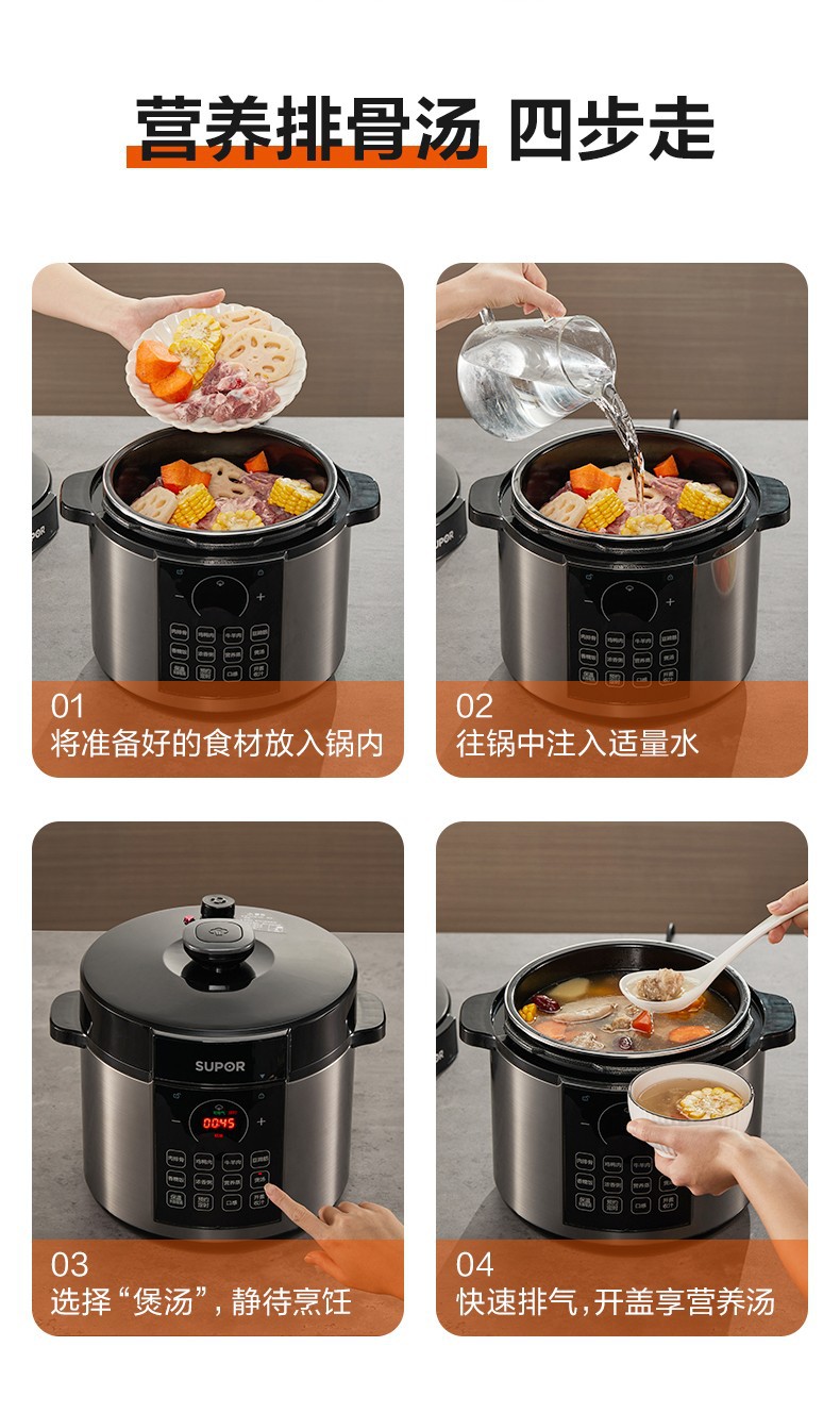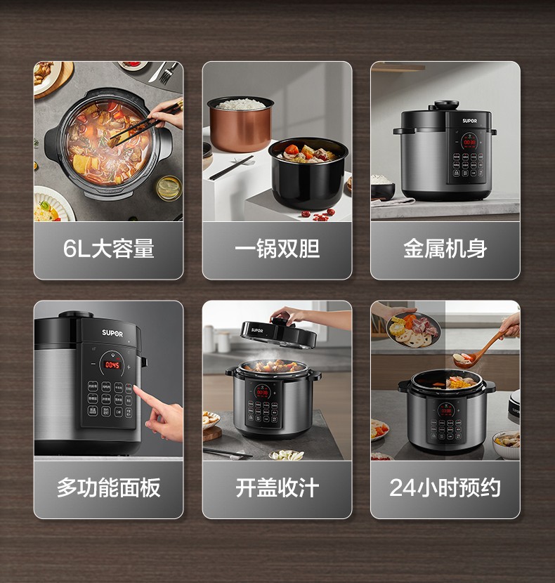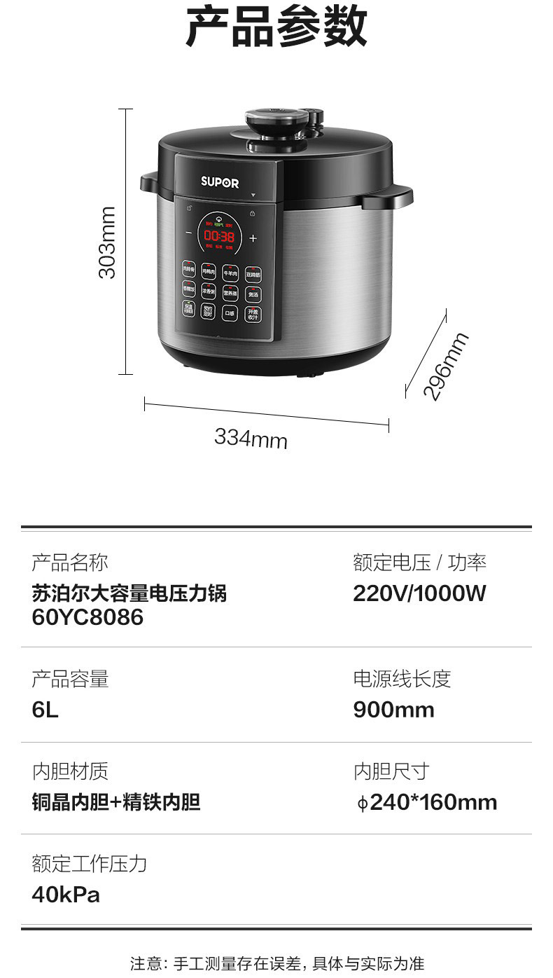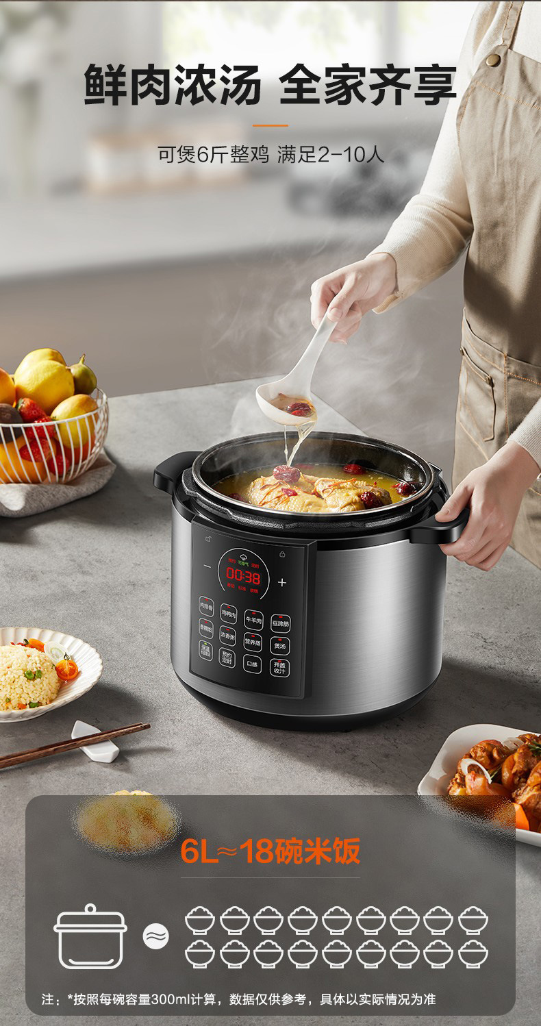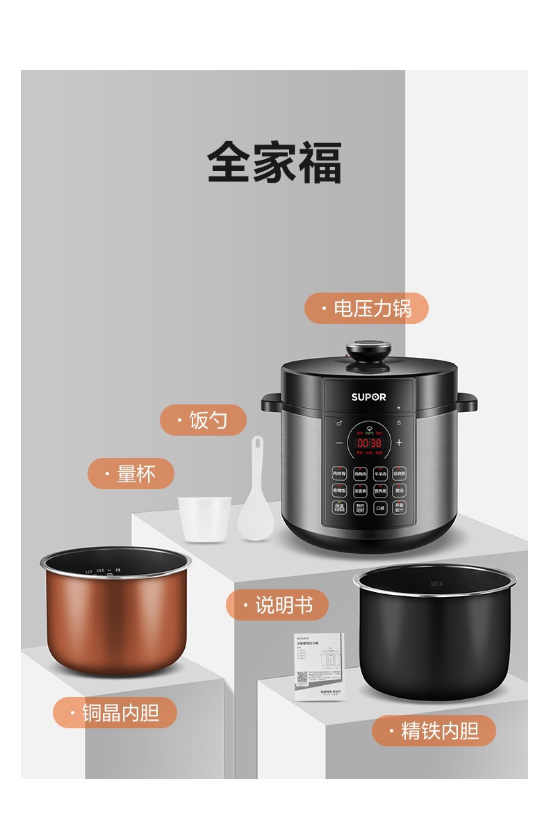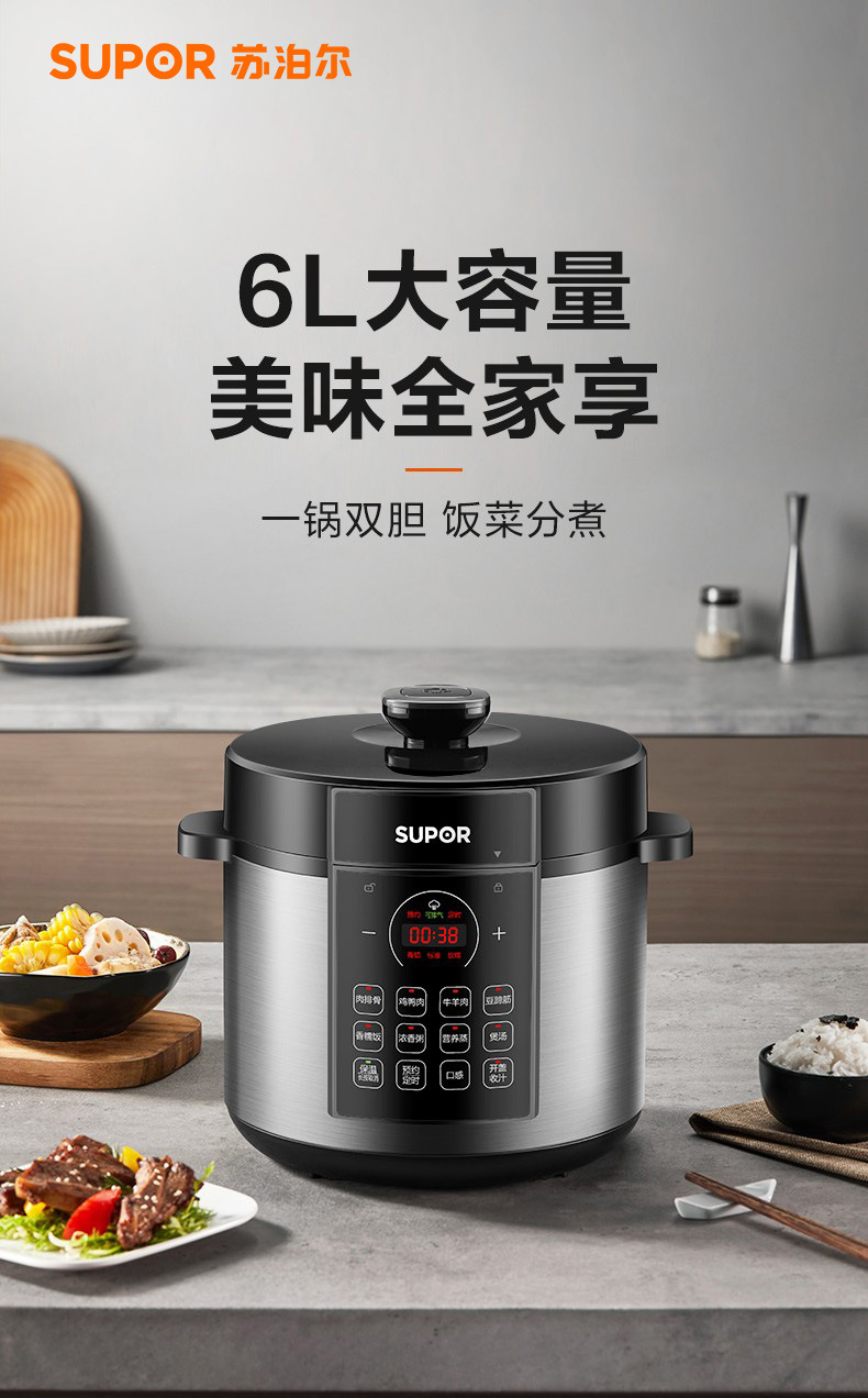• Supor electric pressure cooker pressure cooker household 6-liter rice cooker rice cooker intelligent multifunctional SY-60YC8086