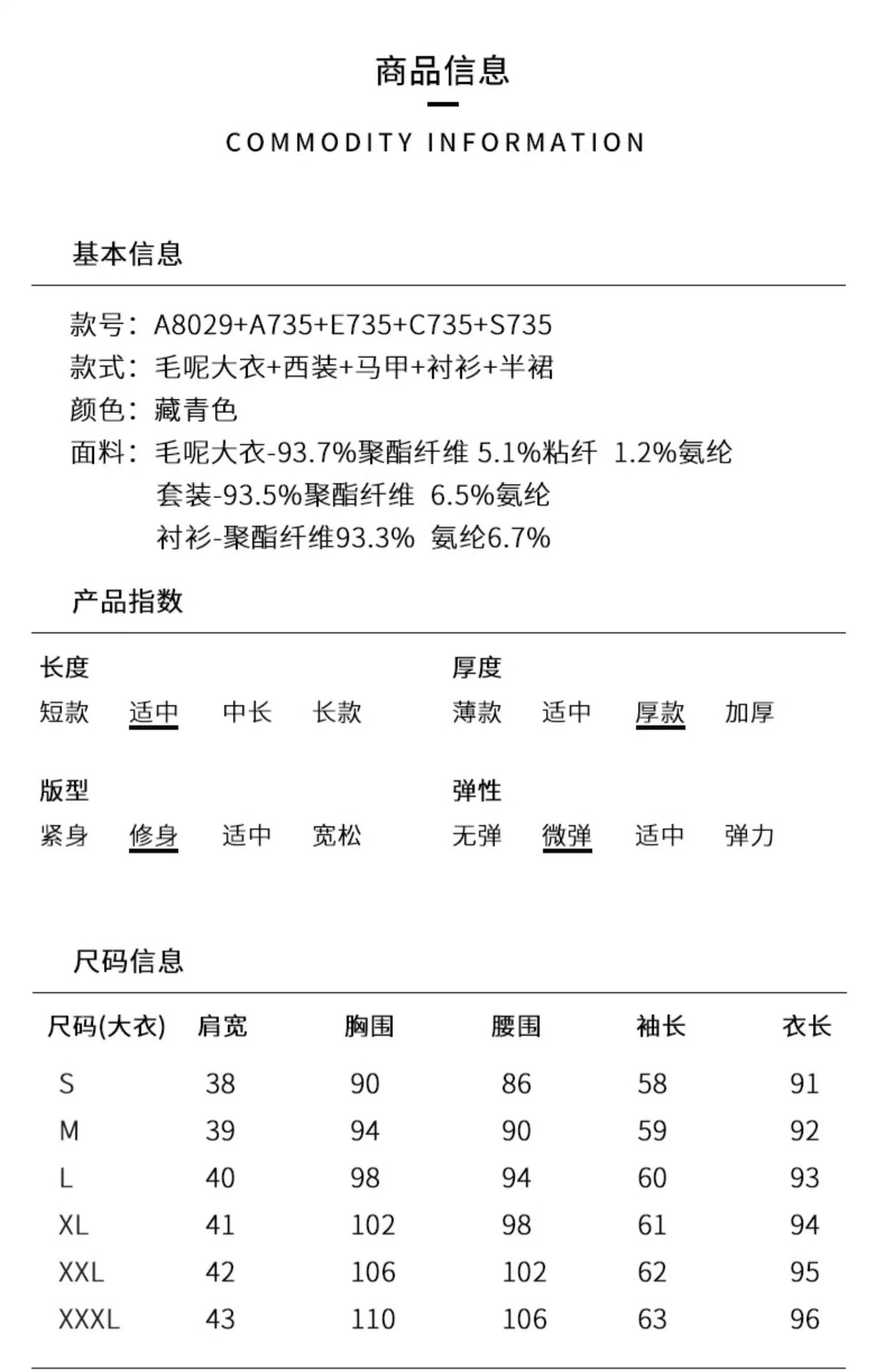 Woolen coat + suit + vest + shirt + skirt + suit pants