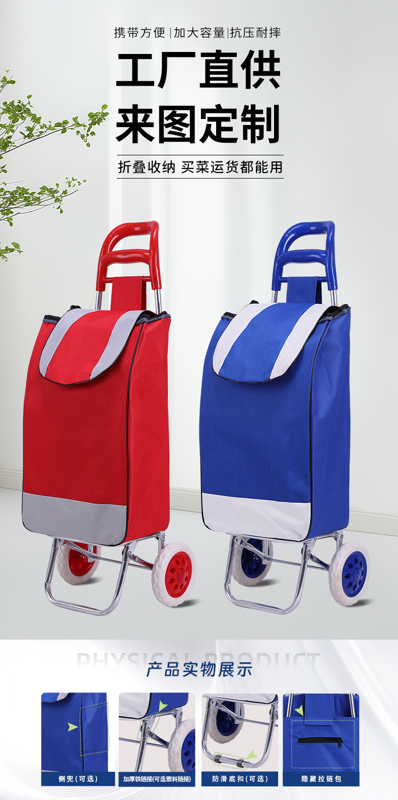 • Custom logo with stool supermarket grocery shopping trolley folding stair-climbing shopping cart for the elderly grocery shopping trolley