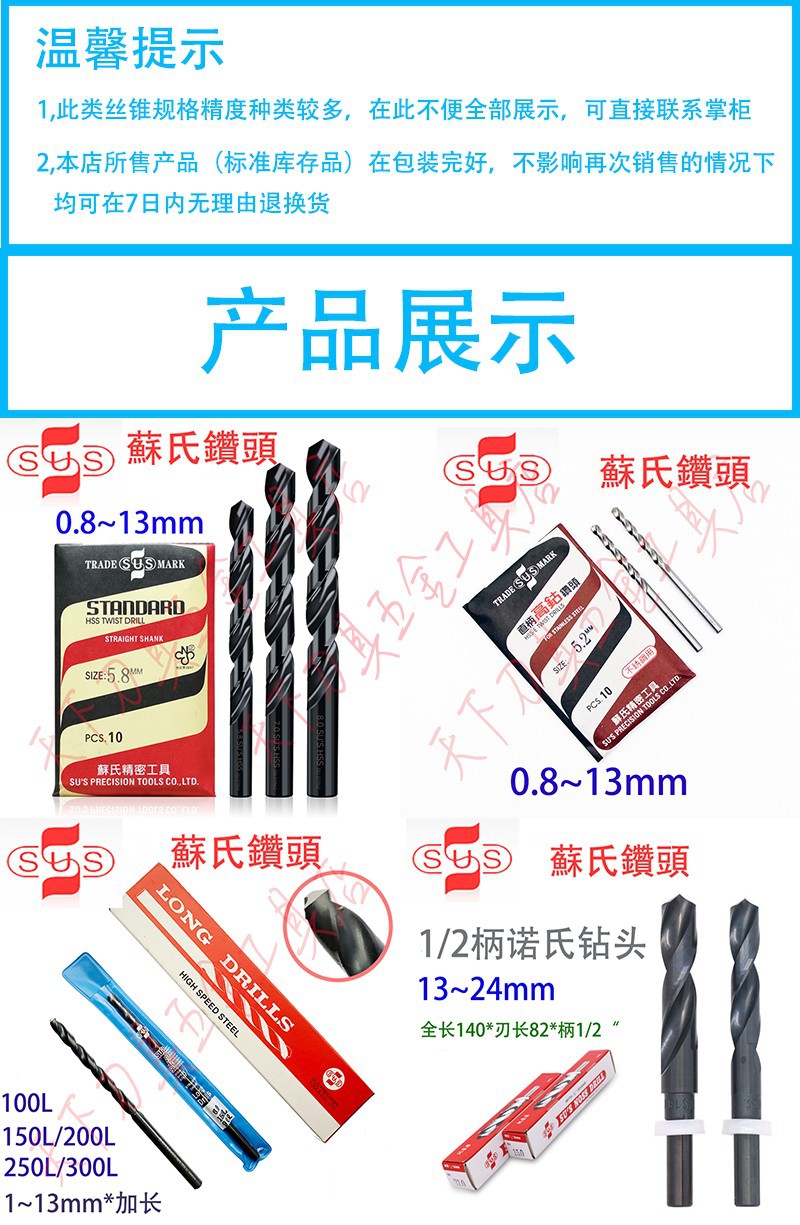 • Taiwan Su's SUS alloy steel cast iron with straight shank twist drill HSS high speed steel drill 0.8-13.0mm