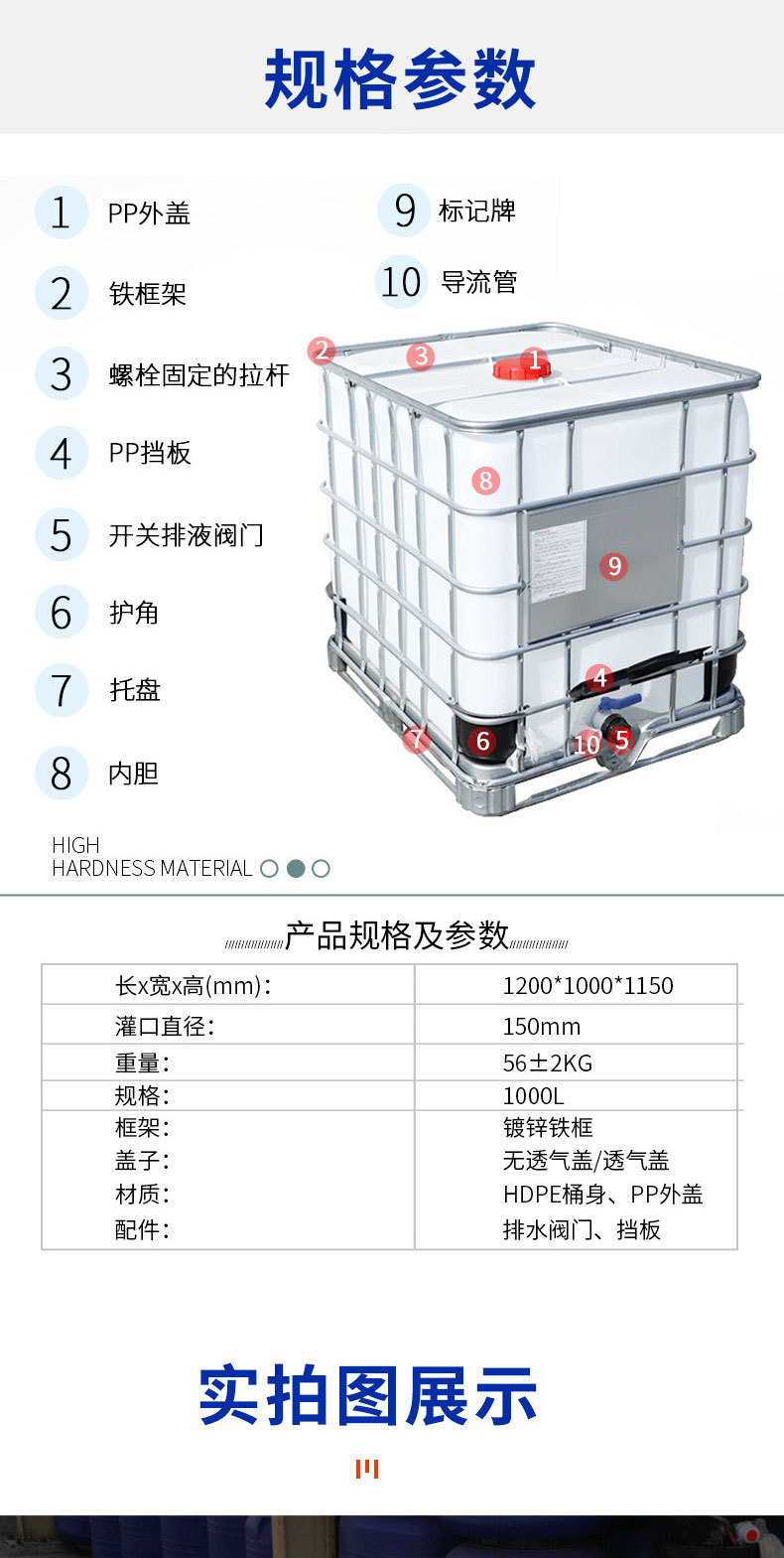 • Manufacturer Ibc Ton Barrel 1000 Liter Chemical Barrel Diesel Wastewater Plastic One Ton Container Barrel Durable New Water Storage Barrel