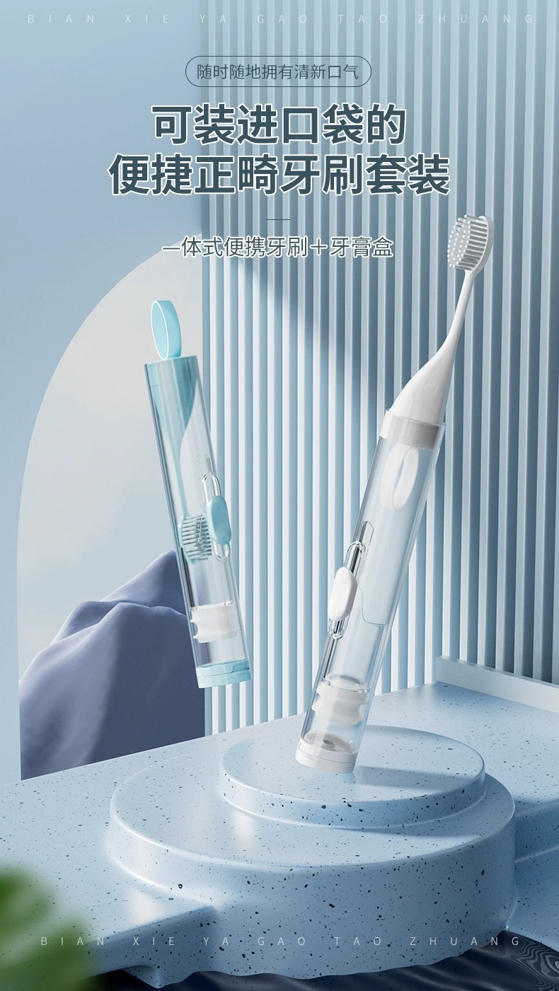 • New Orthodontic Folding Travel Toothbrush Portable Toothbrush Toothpaste All-In-One Carrying Toothbrush Set Wholesale