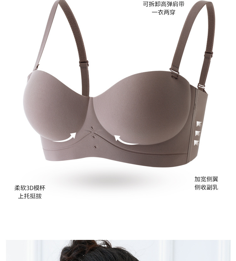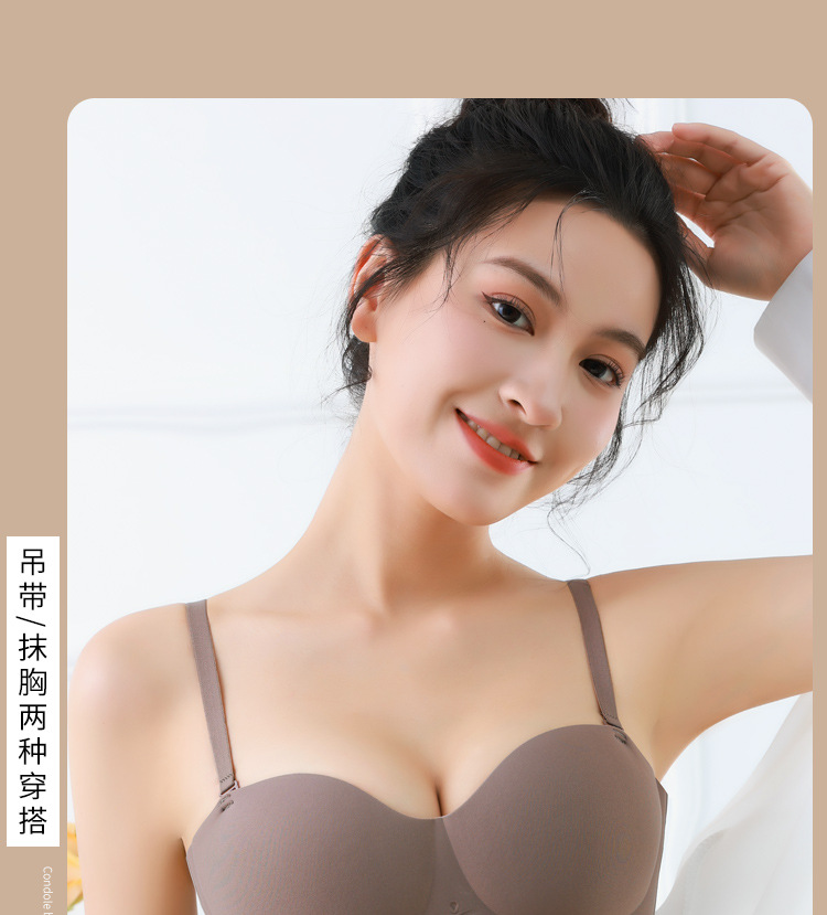 • Seamless Underwear Women's Small Chest Gathering Large Extensive Strapless Thin Non-rimless Anti-sagging Cartoon Chest Bra