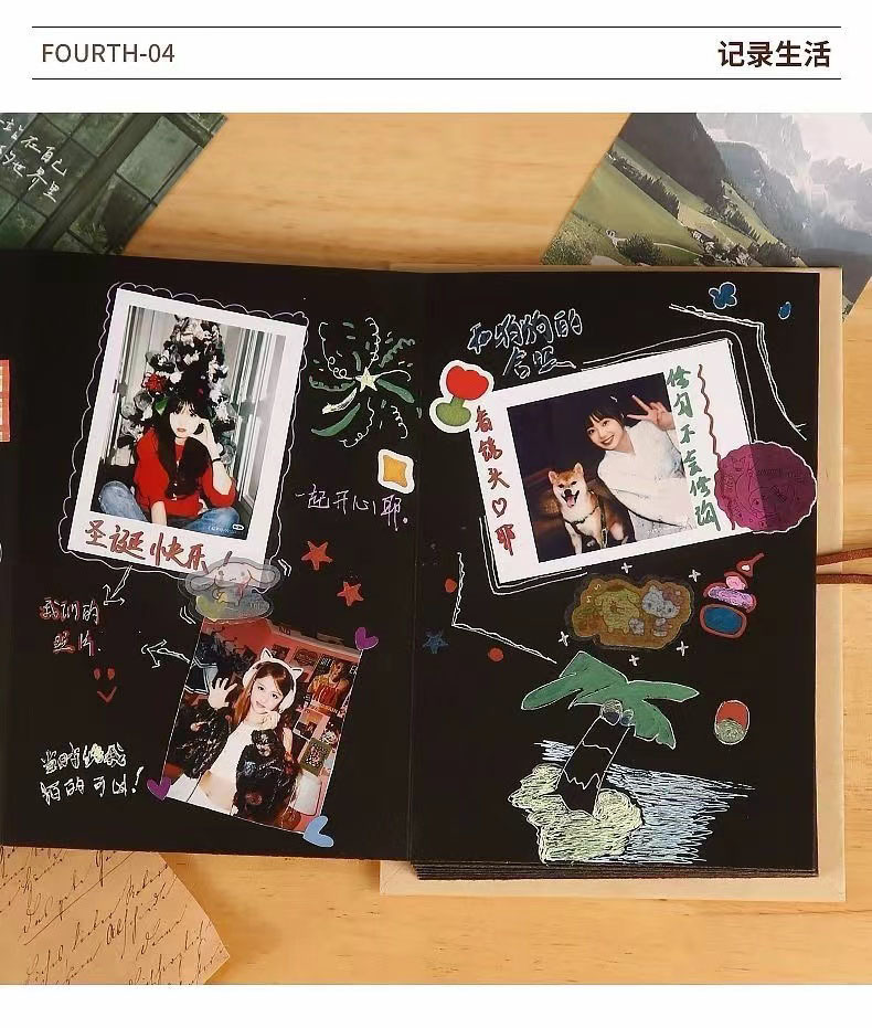 • Accordion DIY Photo Album Black Card Photo Album Handmade DIY Photo Album Paste Classmate Commemorative Album Couple Photo Album