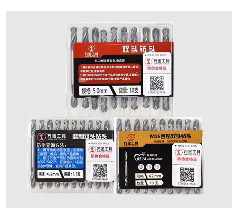 Wanjin stainless steel double-headed twist drill hand electric drill special cobalt-containing double-headed drill 4.2/5.2 for metal drilling