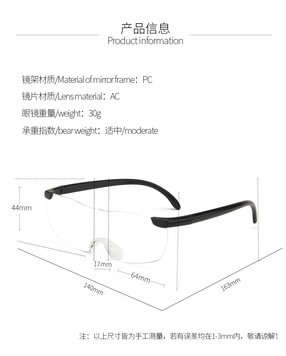 • Spot Wholesale 1.6X Magnifying Glass Cross-Border Aliexpress Amazon Hd Men and Women 250 Degree Reading Glasses