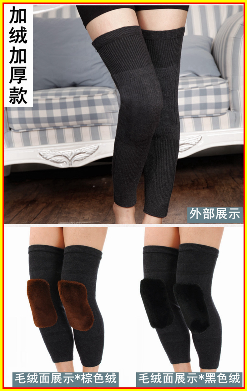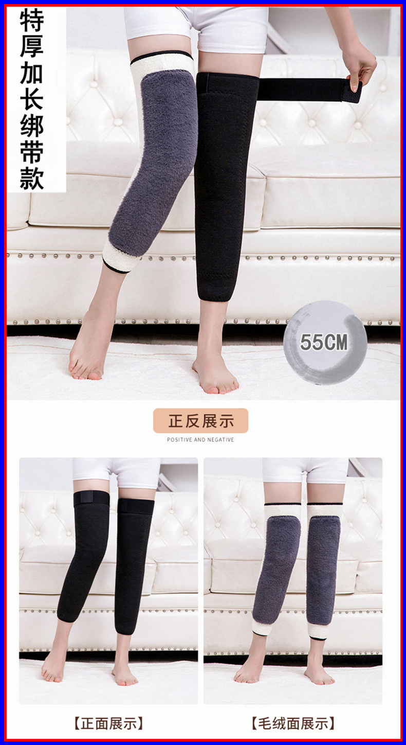 Winter Thickened Warm Knee Cover Lined Velvet Long Full Leggings for Elderly Men and Women Elasticized Anti-Slip Anti-Fever Windproof