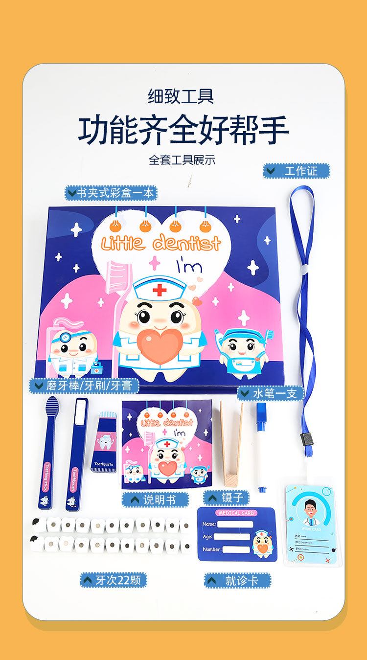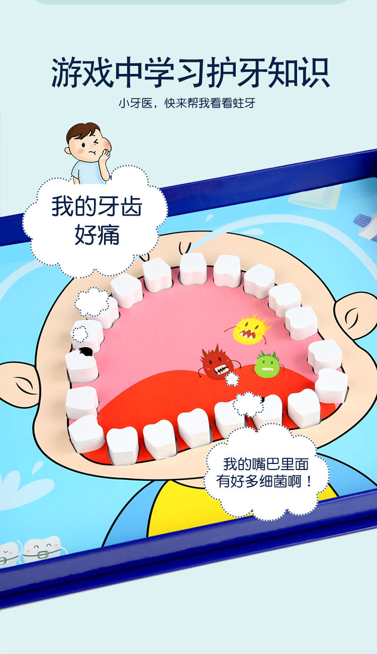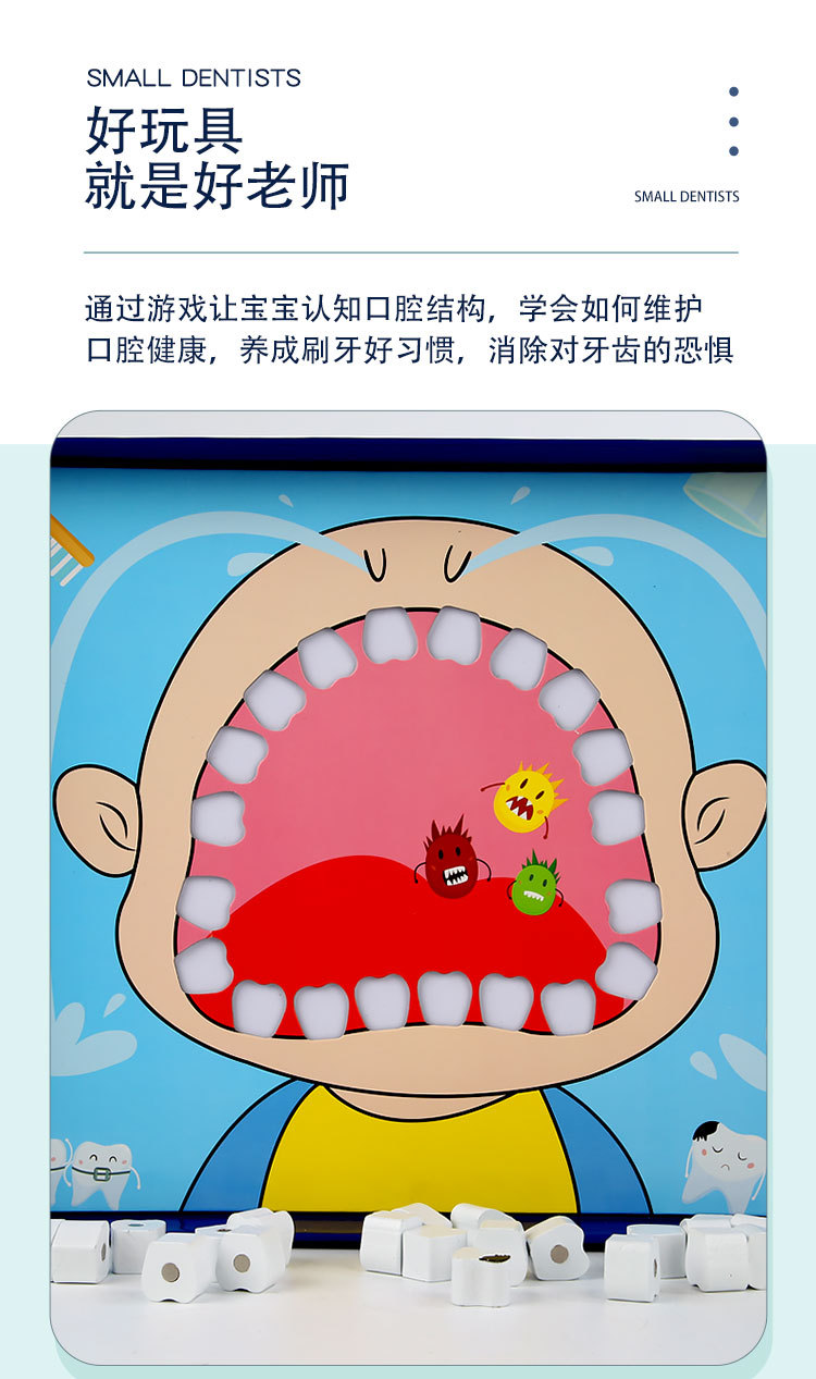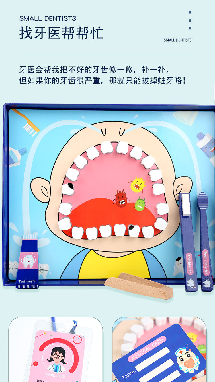 • Wooden Simulation Doctor Set Children's Educational Role-Playing Interactive Play House Small Dentist Educational Tooth Toy