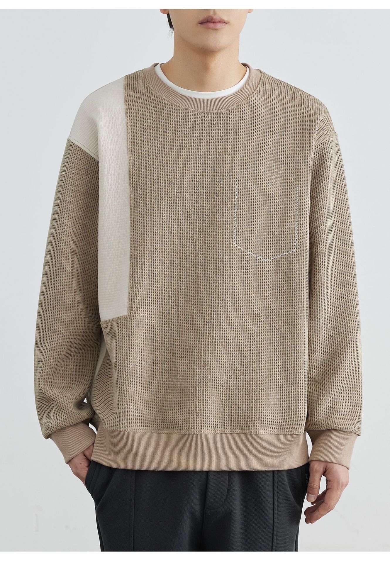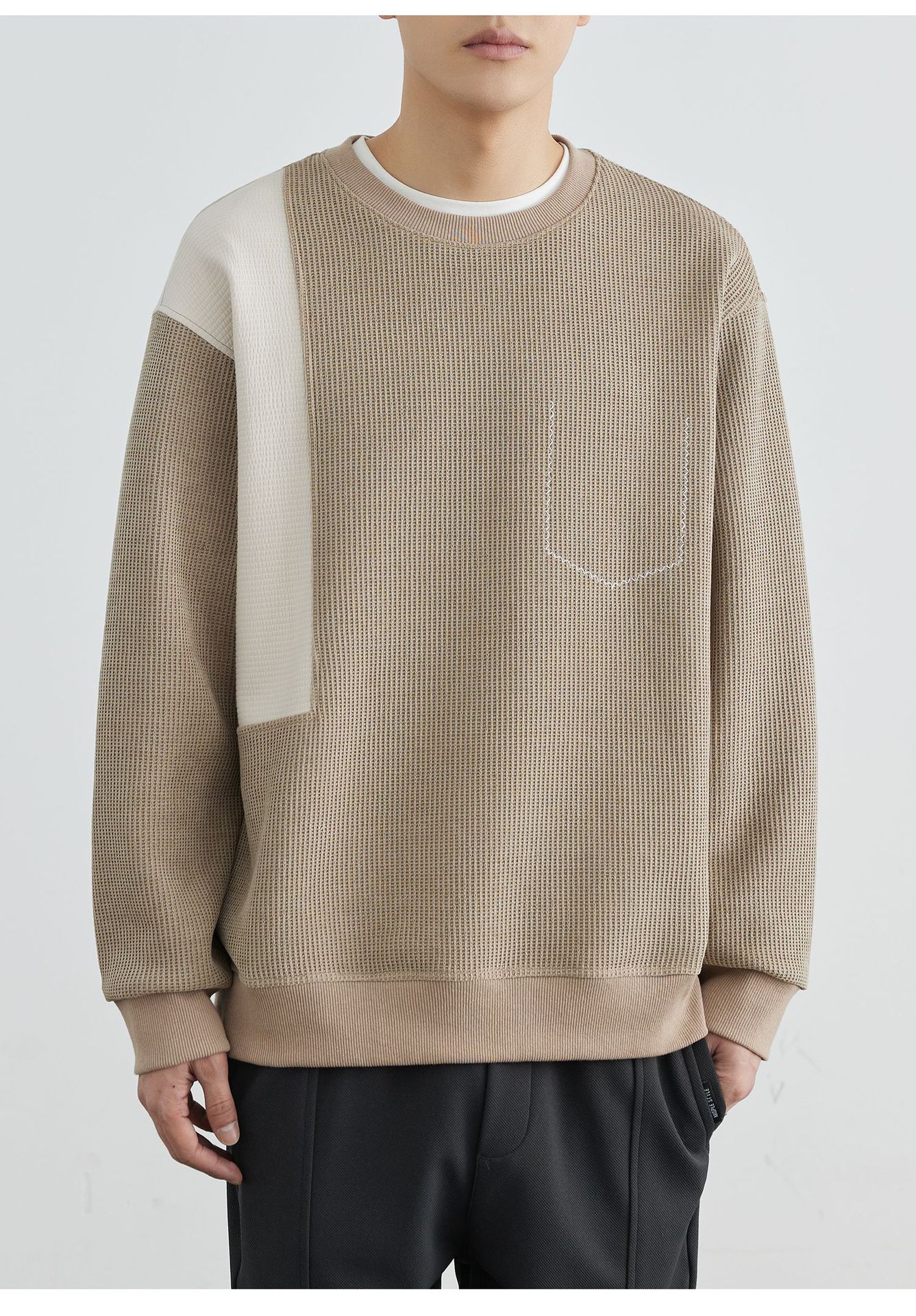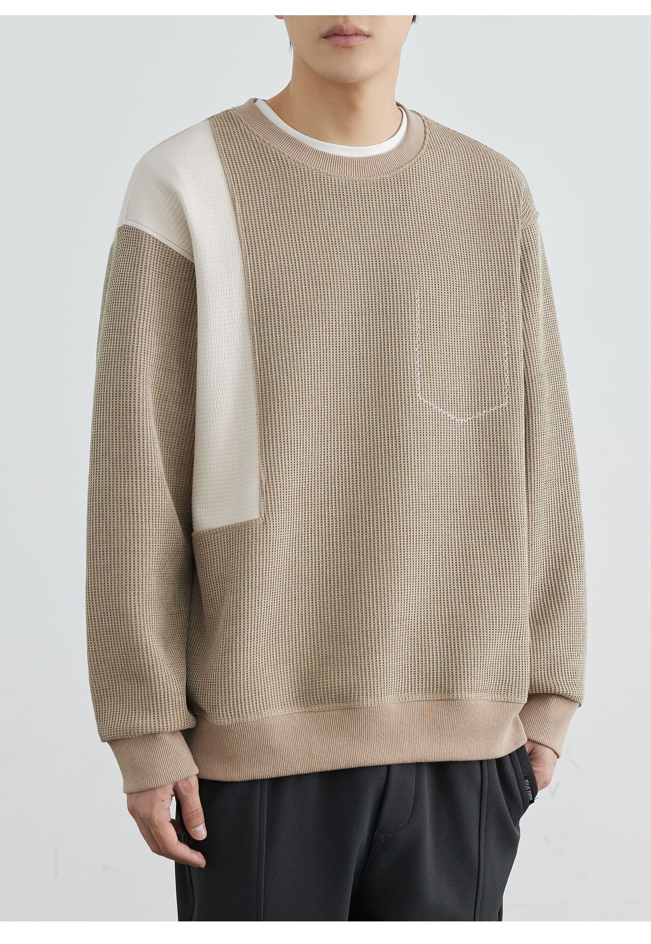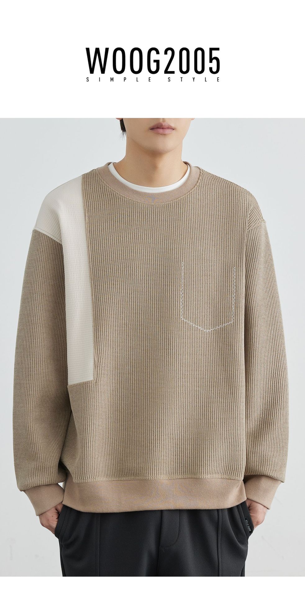 • Velvet and Thickeneded High-End Spliced Round Neck Men's Sweatshirt 2025 Spring and Autum New Slightly Loose Pullover Top