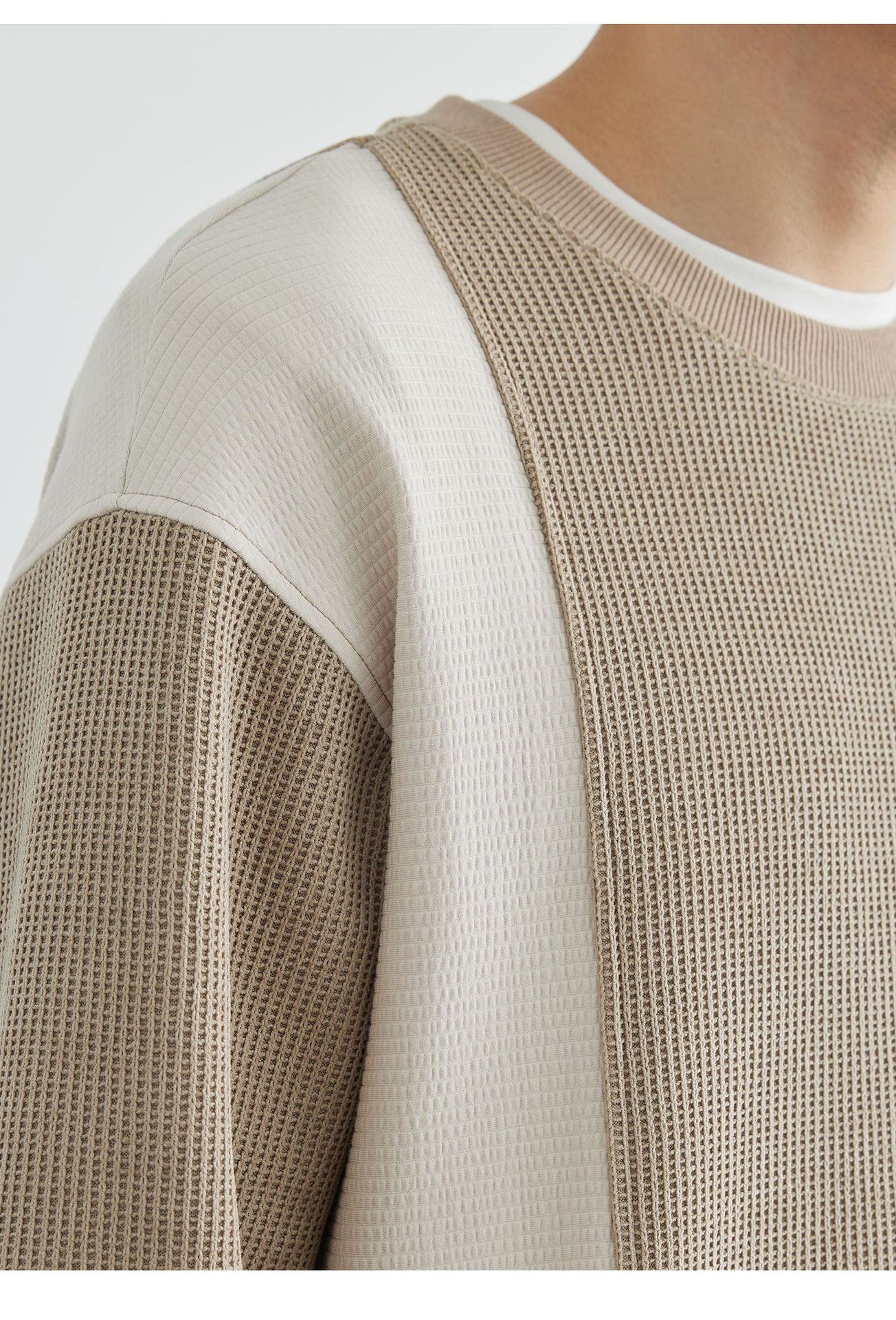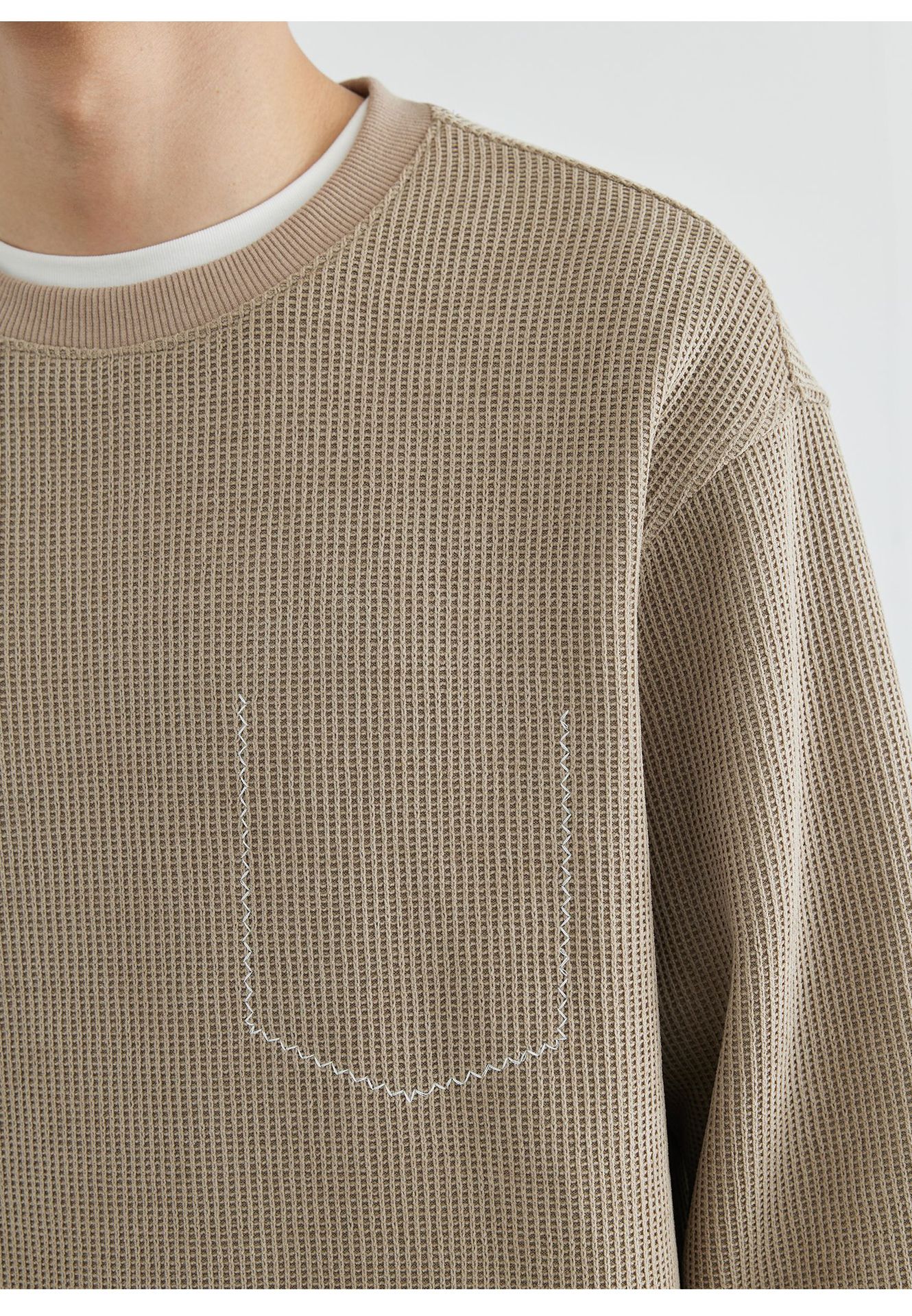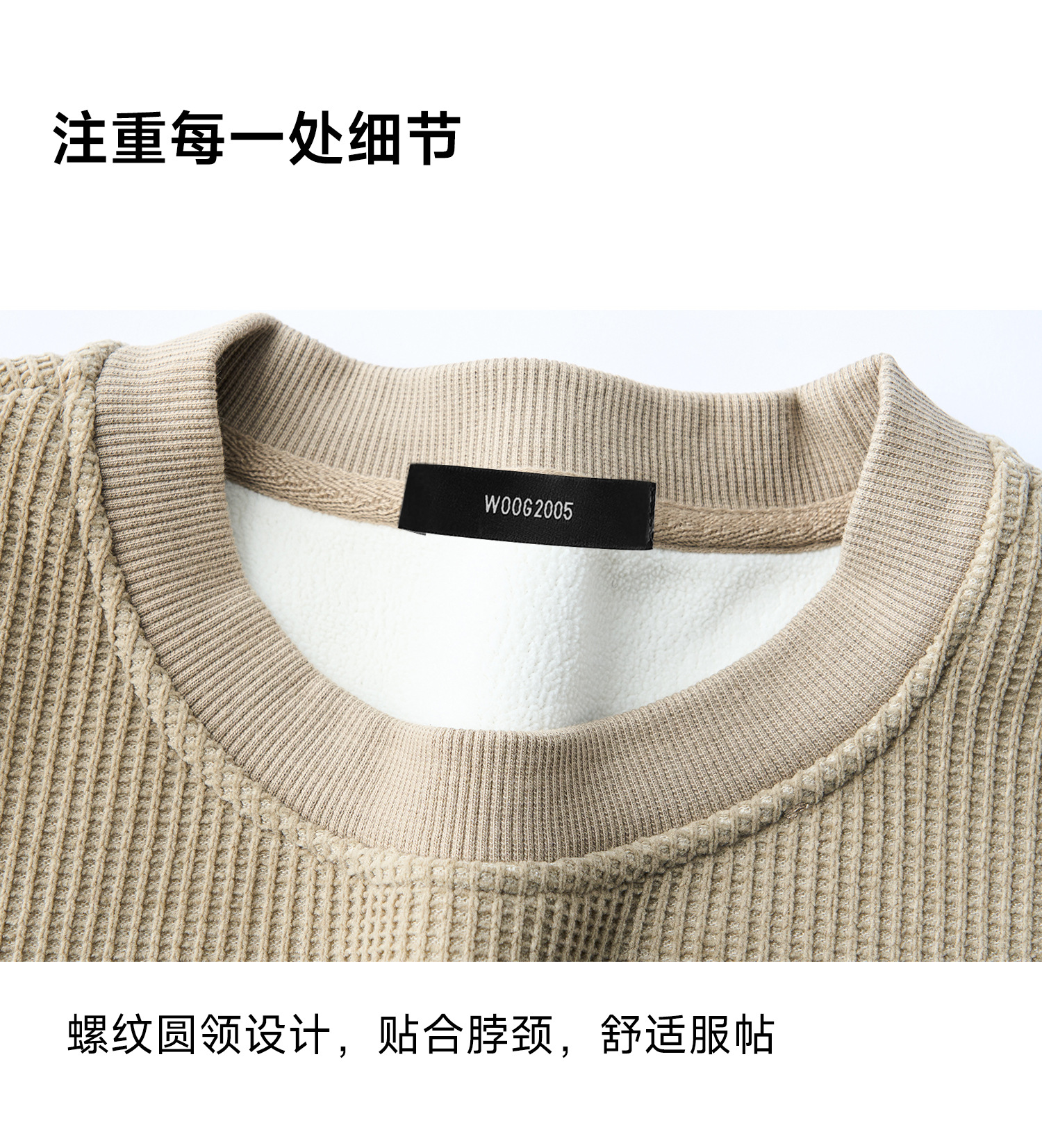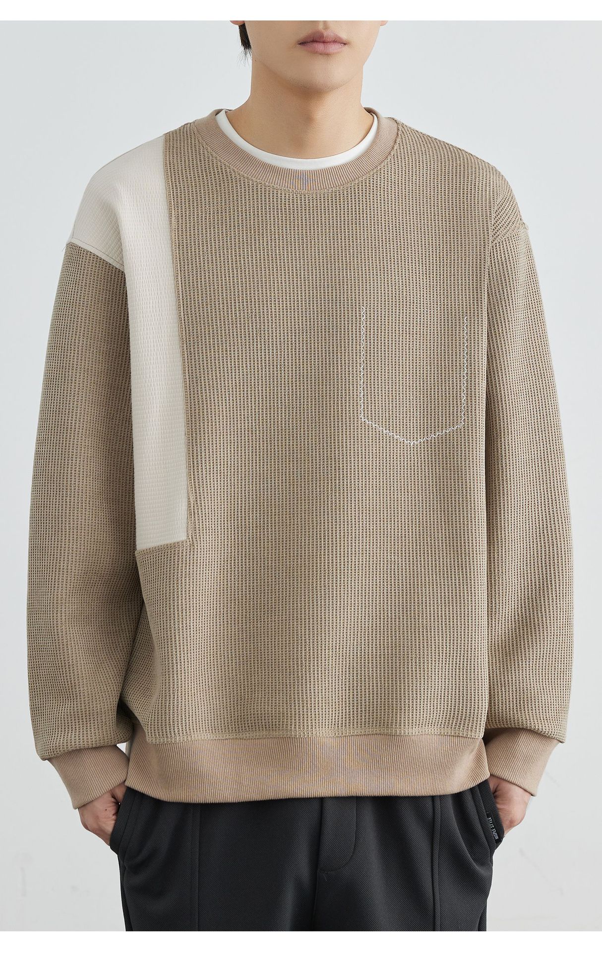 • Velvet and Thickeneded High-End Spliced Round Neck Men's Sweatshirt 2025 Spring and Autum New Slightly Loose Pullover Top